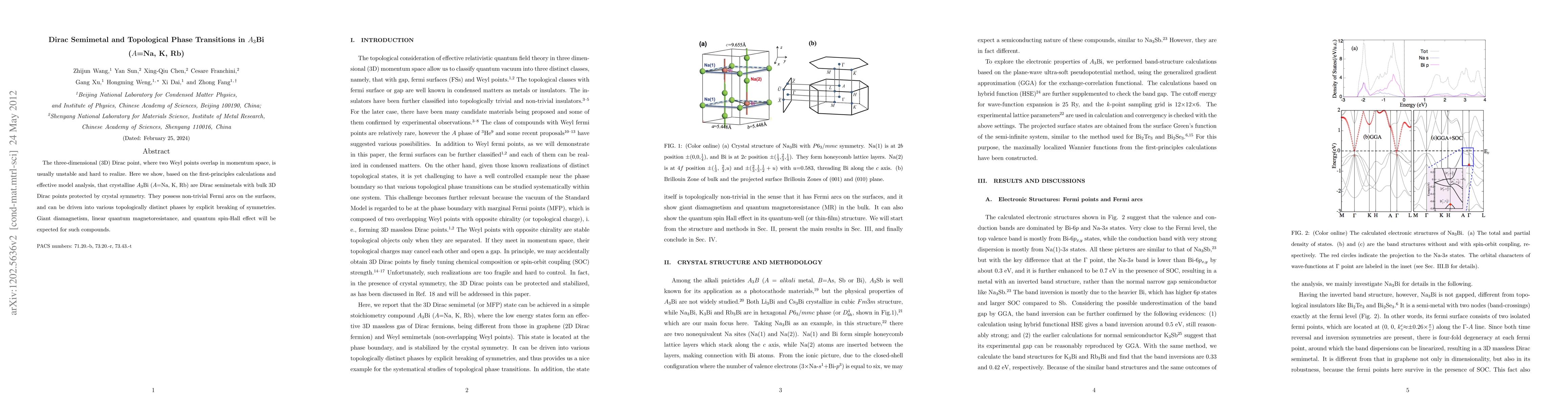 This work presents a new realization of bulk 3D Dirac points in A3Bi compounds, distinct from previous proposals, and highlights their unique properties, such as surface Fermi arcs and symmetry-driven topological phase transitions.