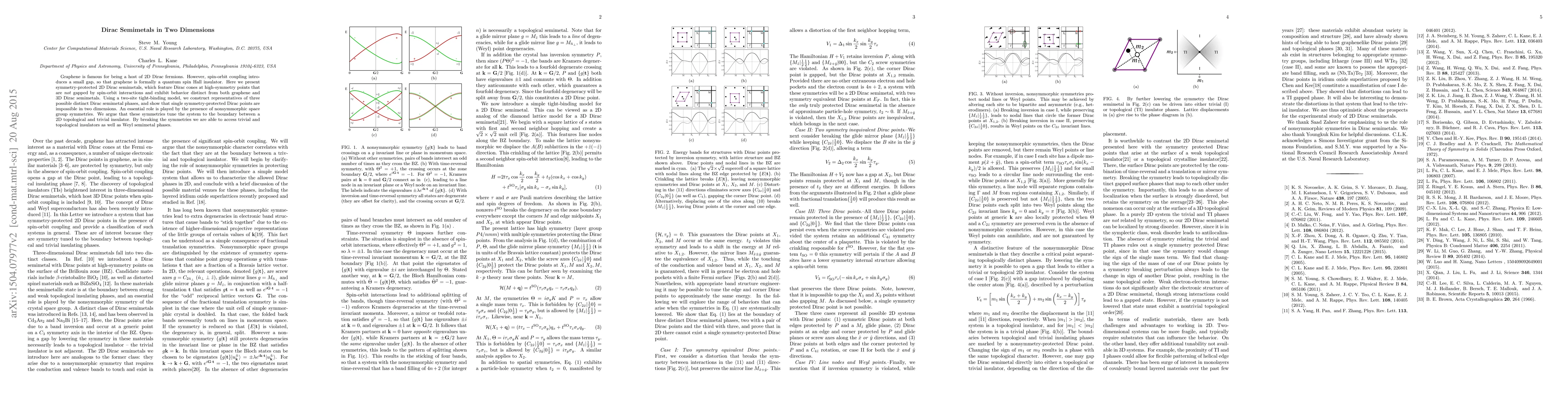 This research introduces 2D Dirac semimetals with un-gapped Dirac cones protected by symmetry, distinct from graphene and 3D Dirac semimetals. The study employs a tight-binding model to identify three phases, revealing that single Dirac points are not feasible in 2D due to non-symmorphic space group symmetries, which tune the system between topological and trivial insulators.