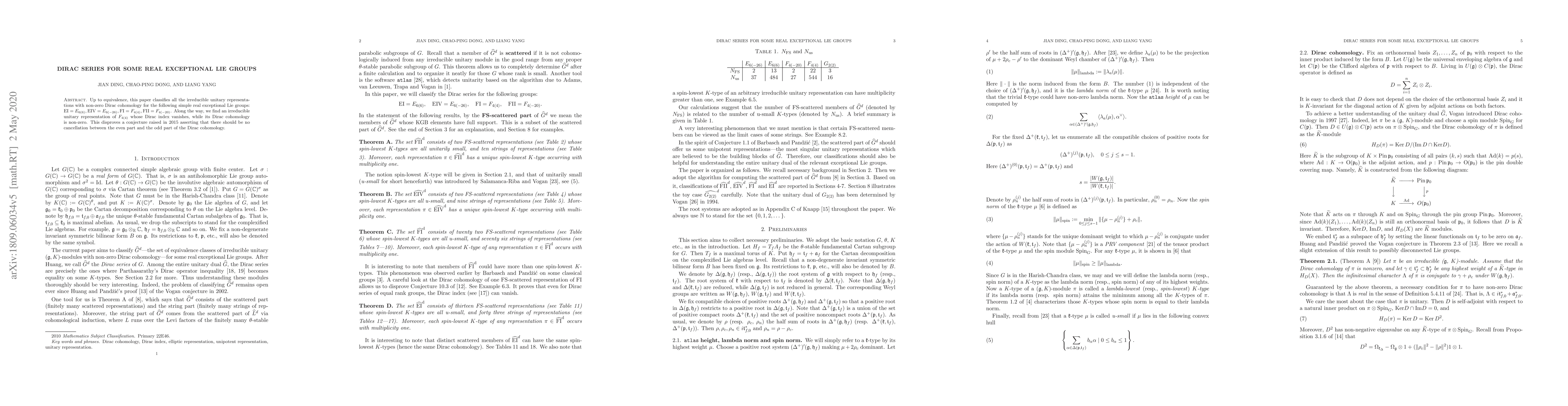 This paper classifies irreducible unitary representations with non-zero Dirac cohomology for four exceptional Lie groups, finding a representation for $F_{4(4)}$ with non-zero Dirac cohomology but zero Dirac index, thus disproving a 2015 conjecture about cancellation in Dirac cohomology.