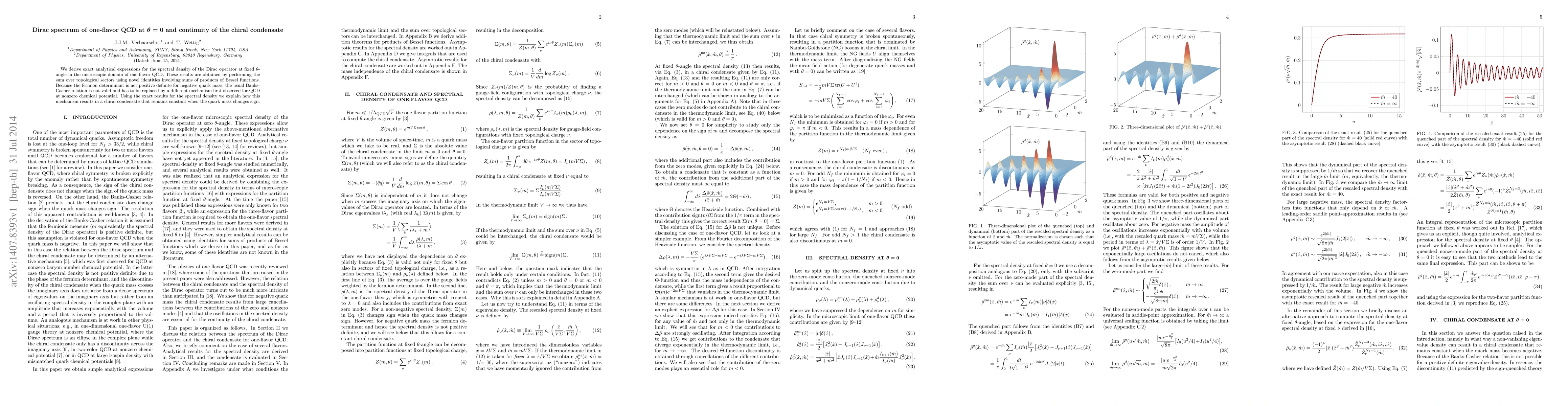 We derive exact analytical expressions for the spectral density of the Dirac operator at fixed \theta-angle in the microscopic domain of one-flavor QCD. These results are obtained by performing the sum over topological sectors using novel identities involving sums of products of Bessel functions. Because the fermion determinant is not positive definite for negative quark mass, the usual Banks-Casher relation is not valid and has to be replaced by a different mechanism first observed for QCD at nonzero chemical potential. Using the exact results for the spectral density we explain how this mechanism results in a chiral condensate that remains constant when the quark mass changes sign.
