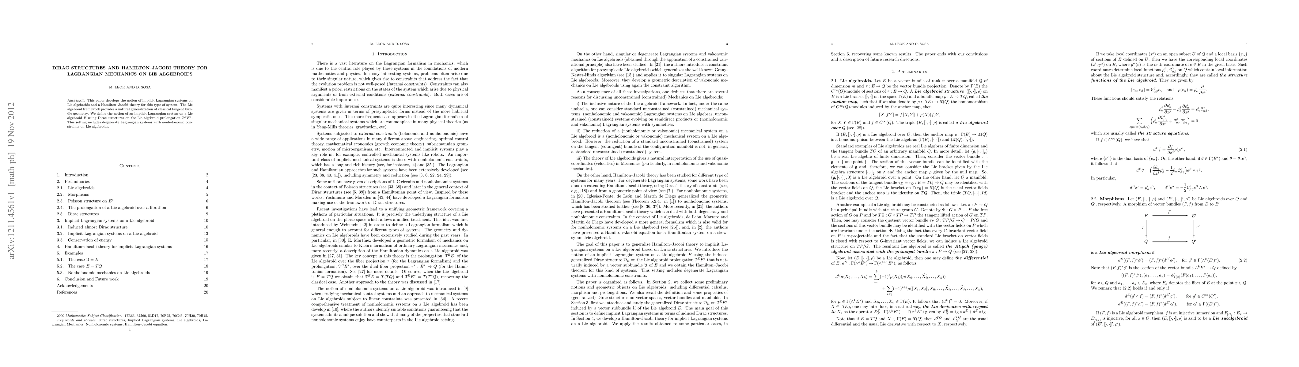 This paper introduces implicit Lagrangian systems on Lie algebroids and develops a Hamilton-Jacobi theory for these systems. The framework generalizes classical tangent bundle geometry and incorporates degenerate Lagrangian systems with nonholonomic constraints.