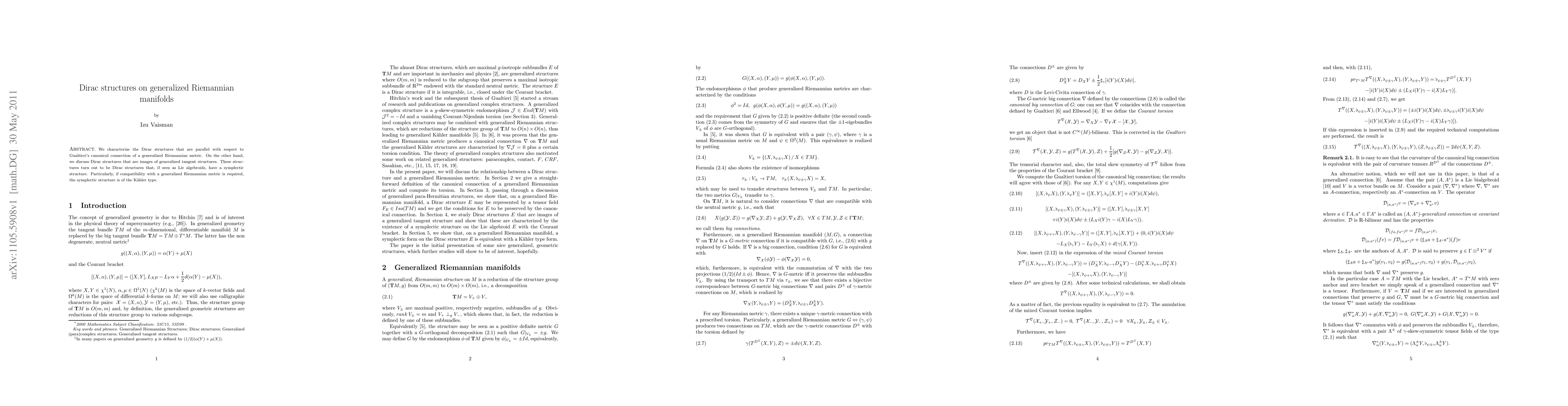 The paper introduces a detailed analysis of Dirac structures' parallelism with Gualtieri's canonical connection and their representation as symplectic Lie algebroids, extending the understanding of these structures in the framework of generalized Riemannian geometry.