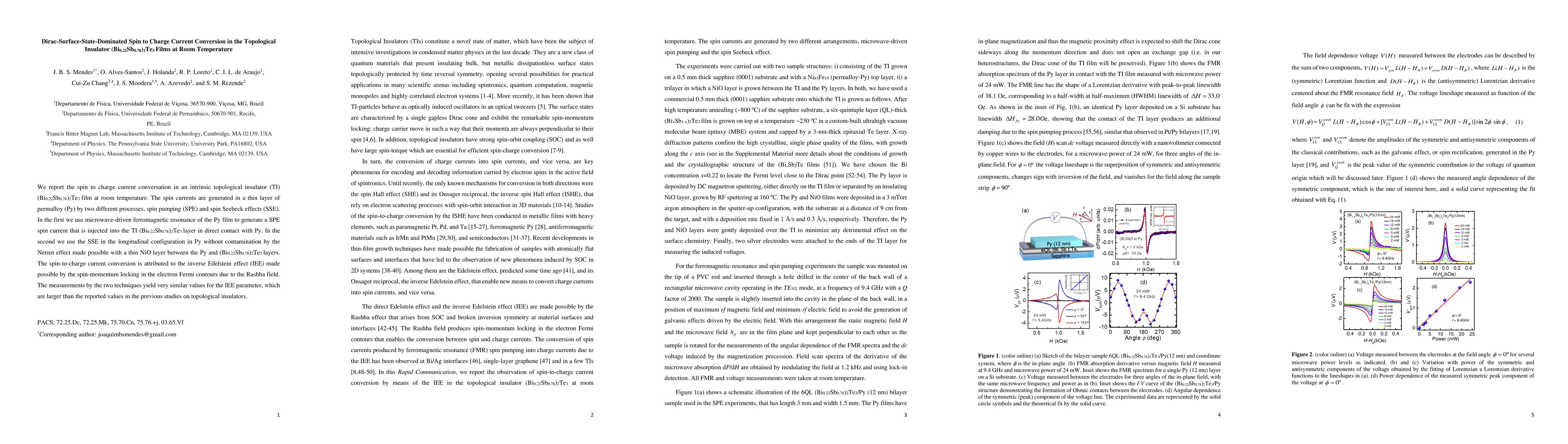 We report the spin to charge current conversation in an intrinsic topological insulator (TI) $(Bi_{0.22}Sb_{0.78})_2Te_3$ film at room temperature. The spin currents are generated in a thin layer of permalloy (Py) by two different processes, spin pumping (SPE) and spin Seebeck effects (SSE). In the first we use microwave-driven ferromagnetic resonance of the Py film to generate a SPE spin current that is injected into the TI $(Bi_{0.22}Sb_{0.78})_2Te_3$ layer in direct contact with Py. In the second we use the SSE in the longitudinal configuration in Py without contamination by the Nernst effect made possible with a thin NiO layer between the Py and $(Bi_{0.22}Sb_{0.78})_2Te_3$ layers. The spin-to-charge current conversion is attributed to the inverse Edelstein effect (IEE) made possible by the spin-momentum locking in the electron Fermi contours due to the Rashba field. The measurements by the two techniques yield very similar values for the IEE parameter, which are larger than the reported values in the previous studies on topological insulators.