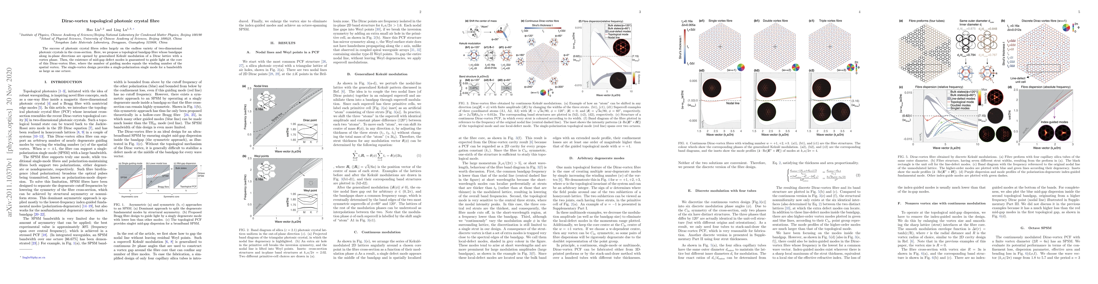 This paper proposes a novel topological photonic crystal fibre utilizing a Dirac-vortex lattice to create a bandgap structure, guaranteeing mid-gap defect modes for light guidance. The fibre's design allows for single-polarization single-mode operation over a broad bandwidth of one octave.