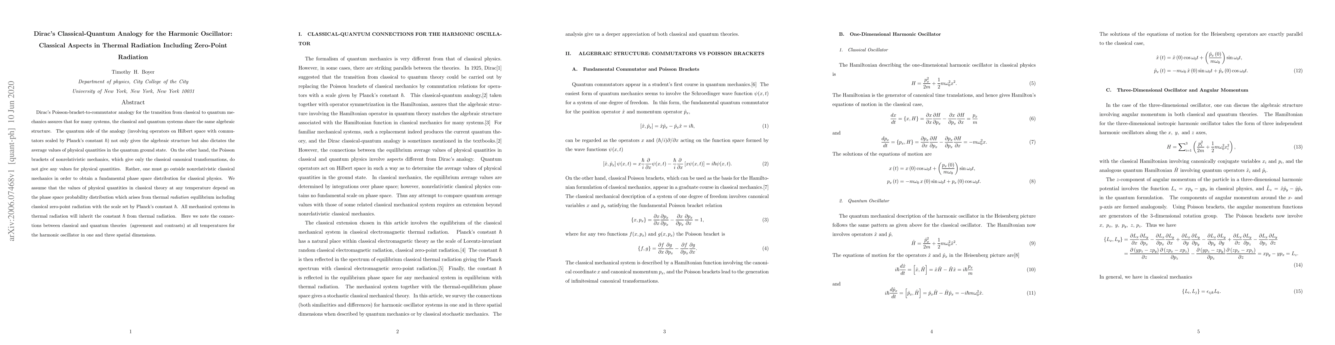 This paper explores Dirac's classical-quantum analogy for the harmonic oscillator, emphasizing how classical thermal radiation, including zero-point radiation, influences the phase space probability distribution. It highlights the shared algebraic structure between classical and quantum systems, while noting the necessity of incorporating Planck's constant $\hbar$ to bridge classical and quantum descriptions.
