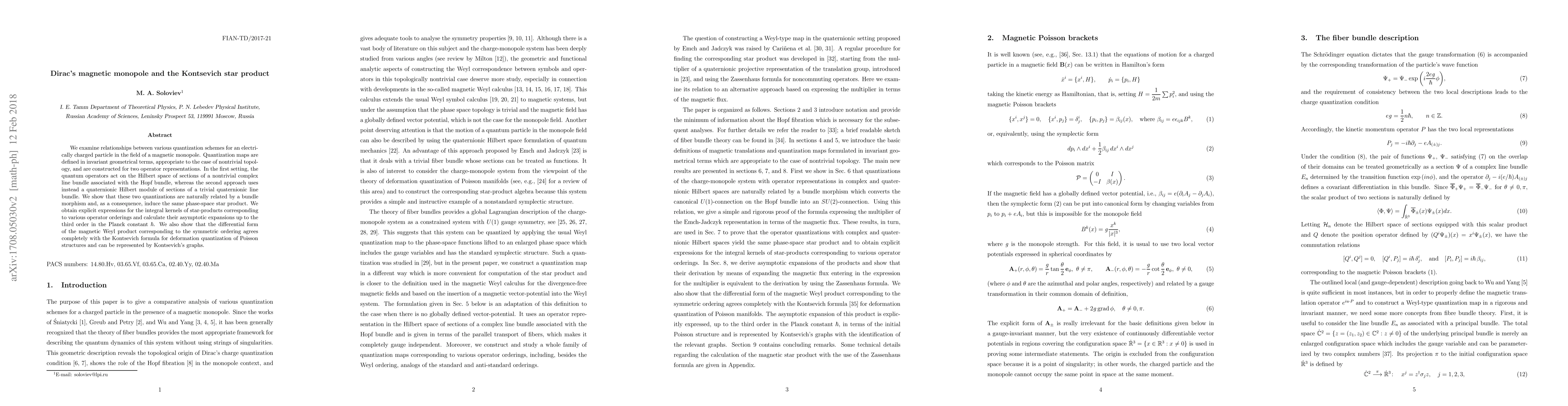 We examine relationships between various quantization schemes for an electrically charged particle in the field of a magnetic monopole. Quantization maps are defined in invariant geometrical terms, appropriate to the case of nontrivial topology, and are constructed for two operator representations. In the first setting, the quantum operators act on the Hilbert space of sections of a nontrivial complex line bundle associated with the Hopf bundle, whereas the second approach uses instead a quaternionic Hilbert module of sections of a trivial quaternionic line bundle. We show that these two quantizations are naturally related by a bundle morphism and, as a consequence, induce the same phase-space star product. We obtain explicit expressions for the integral kernels of star-products corresponding to various operator orderings and calculate their asymptotic expansions up to the third order in the Planck constant $\hbar$. We also show that the differential form of the magnetic Weyl product corresponding to the symmetric ordering agrees completely with the Kontsevich formula for deformation quantization of Poisson structures and can be represented by Kontsevich's graphs.