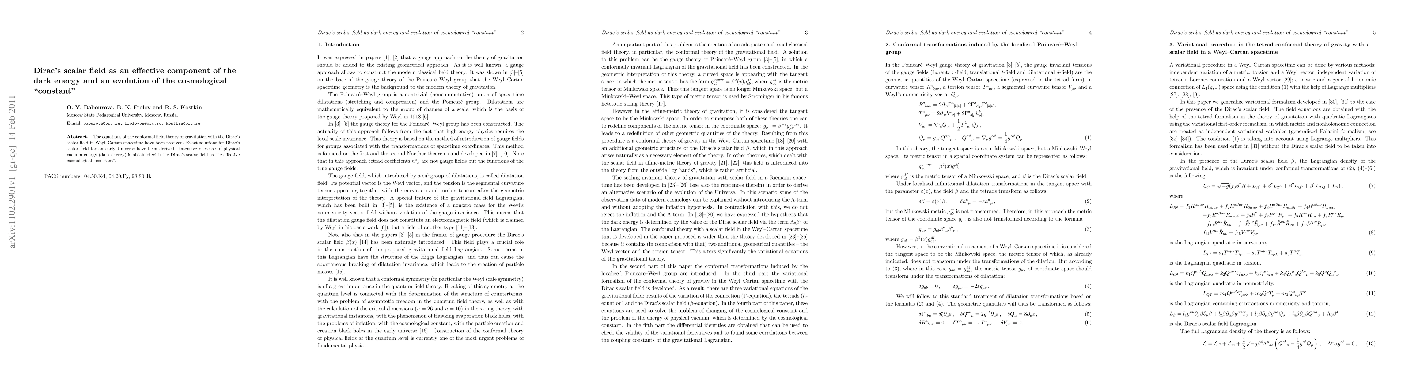 Research finds that Dirac's scalar field can explain a decrease in dark energy, acting as an effective cosmological constant.