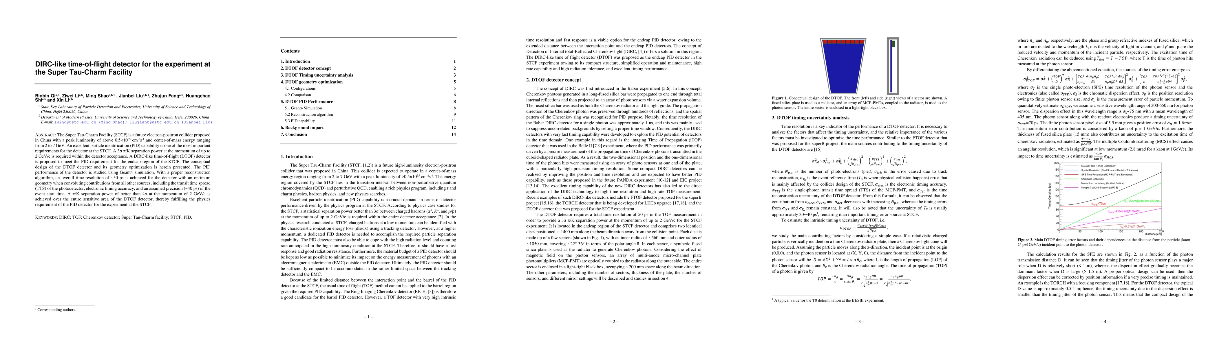 The Super Tau-Charm Facility (STCF) is a future electron-positron collider proposed in China with a peak luminosity of above 0.5$\times$10$^{35}$ cm$^{-2}$s$^{-1}$ and center-of-mass energy ranging from 2 to 7 GeV. An excellent particle identification (PID) capability is one of the most important requirements for the detector at the STCF. A 3$\sigma$ $\pi$/K separation power at the momentum of up to 2 GeV/c is required within the detector acceptance. A DIRC-like time-of-flight (DTOF) detector is proposed to meet the PID requirement for the endcap region of the STCF. The conceptual design of the DTOF detector and its geometry optimization is herein presented. The PID performance of the detector is studied using Geant4 simulation. With a proper reconstruction algorithm, an overall time resolution of ~50 ps is achieved for the detector with an optimum geometry when convoluting contributions from all other sources, including the transit time spread (TTS) of the photodetector, electronic timing accuracy, and an assumed precision (~40 ps) of the event start time. A $\pi$/K separation power of better than 4$\sigma$ at the momentum of 2 GeV/c is achieved over the entire sensitive area of the DTOF detector, thereby fulfilling the physics requirement of the PID detector for the experiment at the STCF.