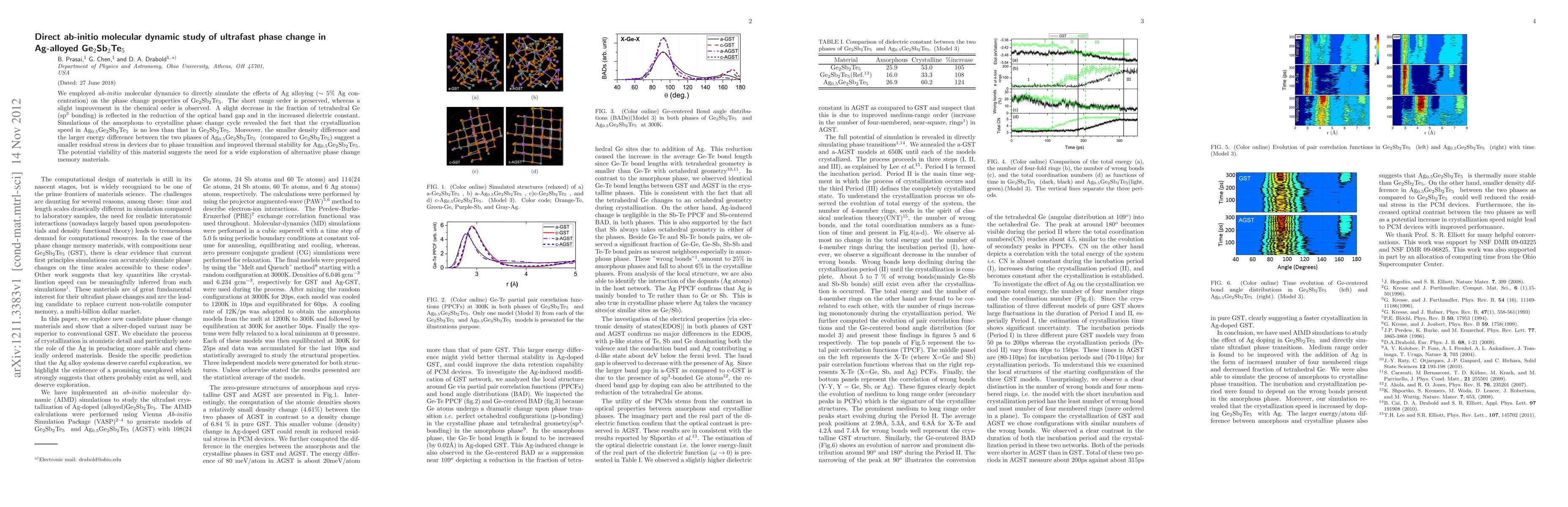 We employed ab-initio molecular dynamics to directly simulate the effects of Ag alloying ($\sim5%$ Ag concentration) on the phase change properties of Ge$_{2}$Sb$_{2}$Te$_{5}$. The short range order is preserved, whereas a slight improvement in the chemical order is observed. A slight decrease in the fraction of tetrahedral Ge (sp$^{3}$ bonding) is reflected in the reduction of the optical band gap and in the increased dielectric constant. Simulations of the amorphous to crystalline phase change cycle revealed the fact that the crystallization speed in Ag$_{0.5}$Ge$_{2}$Sb$_{2}$Te$_{5}$ is no less than that in Ge$_{2}$Sb$_{2}$Te$_{5}$. Moreover, the smaller density difference and the larger energy difference between the two phases of Ag$_{0.5}$Ge$_{2}$Sb$_{2}$Te$_{5}$ (compared to Ge$_{2}$Sb$_{2}$Te$_{5}$) suggest a smaller residual stress in devices due to phase transition and improved thermal stability for Ag$_{0.5}$Ge$_{2}$Sb$_{2}$Te$_{5}$. The potential viability of this material suggests the need for a wide exploration of alternative phase change memory materials.