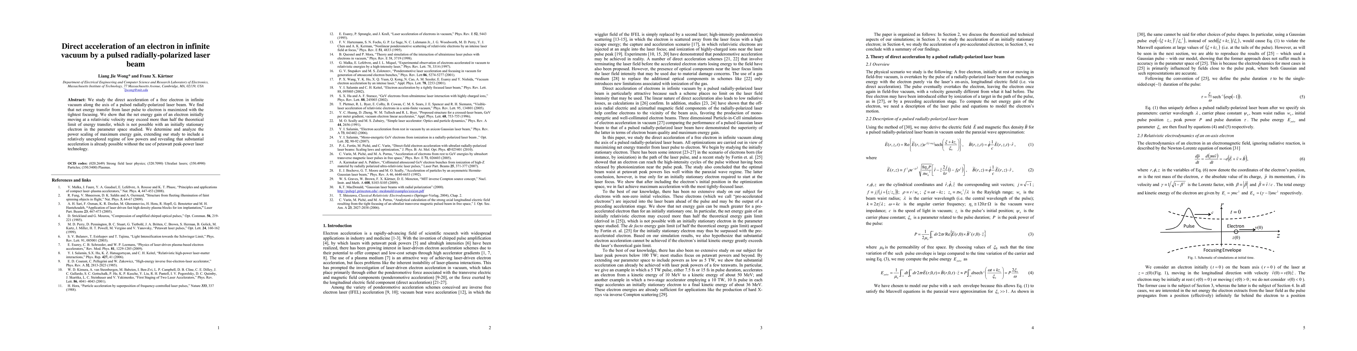 This paper investigates the direct acceleration of relativistic electrons in vacuum by a pulsed radially-polarized laser beam, finding that tightest focusing maximizes energy transfer. It reveals that electrons with initial relativistic velocity can achieve energy gains exceeding half the theoretical limit, even at low laser powers, challenging conventional petawatt peak-power requirements.