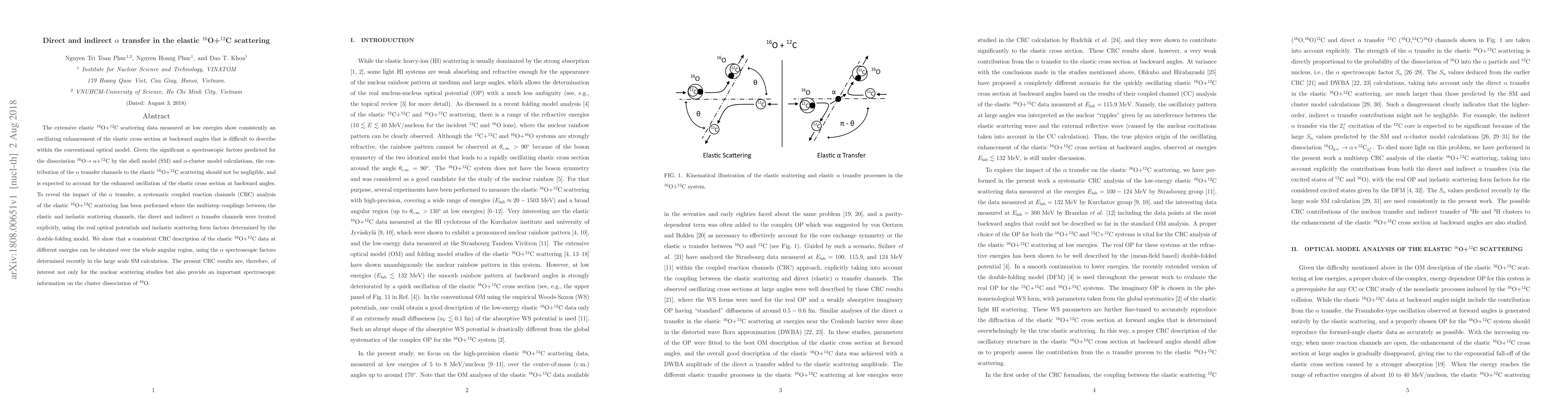 This paper investigates the elastic $^{16}$O+$^{12}$C scattering at low energies, revealing an oscillating enhancement in the elastic cross section at backward angles. A coupled reaction channels analysis incorporating direct and indirect $\alpha$ transfer channels explains the observed oscillations, providing significant spectroscopic information on the dissociation of $^{16}$O into $\alpha$ particles.