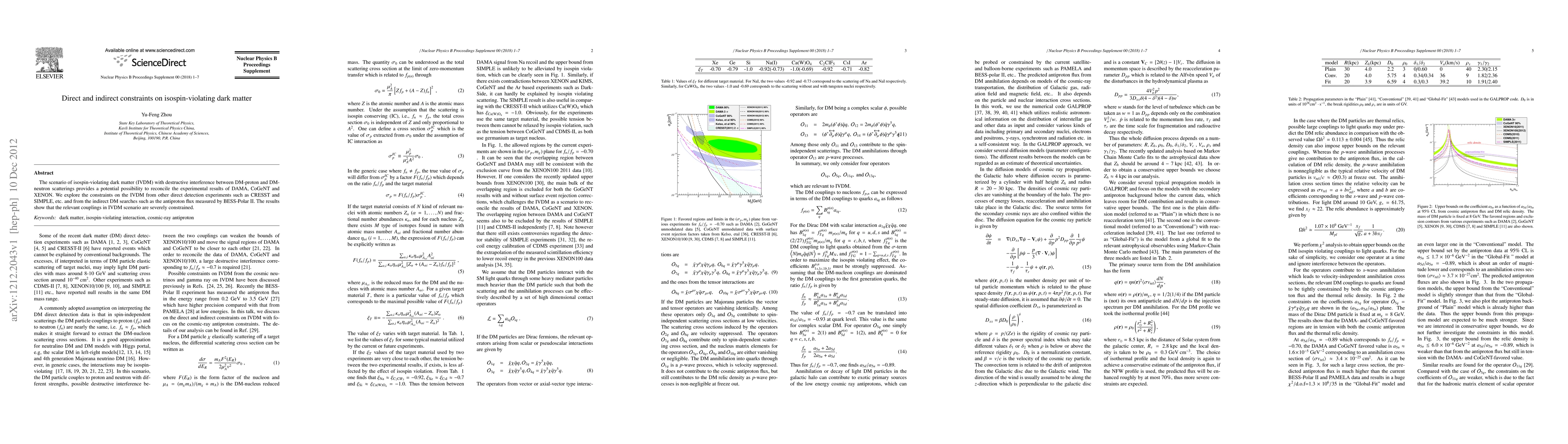 This paper investigates isospin-violating dark matter (IVDM) that could explain DAMA, CoGeNT, and XENON experimental results through destructive interference between DM-proton and DM-neutron scatterings. It finds that IVDM is tightly constrained by direct detection experiments like CRESST and SIMPLE, as well as by indirect searches such as the antiproton flux measured by BESS-Polar II.