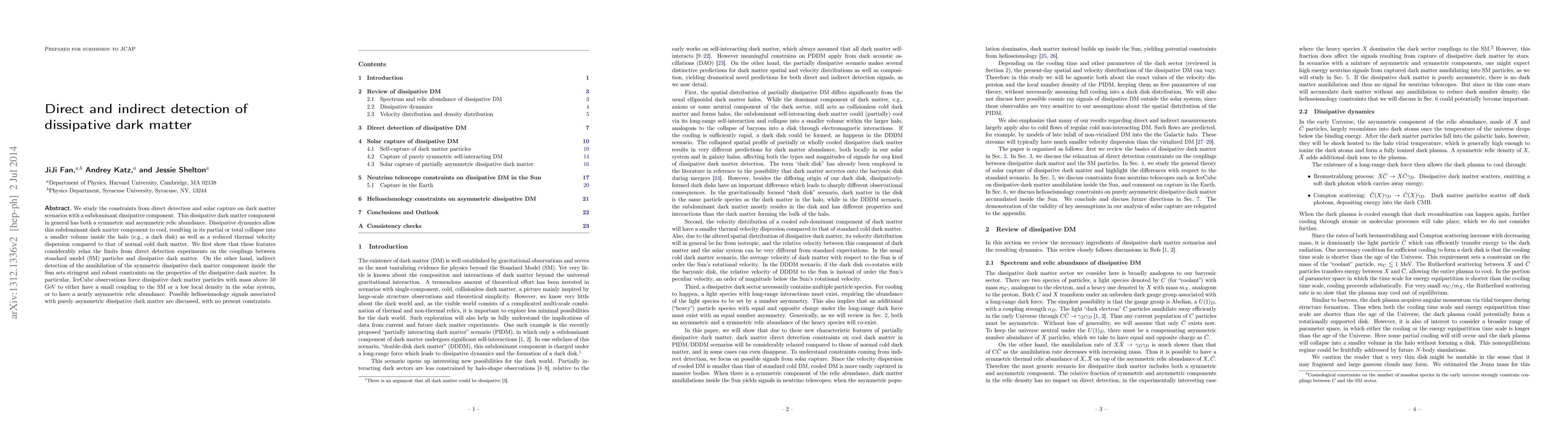This paper investigates the constraints from direct detection and solar capture on dark matter models with a dissipative subdominant component. It finds that dissipative dynamics relax direct detection limits but impose stringent constraints on the properties of dissipative dark matter through indirect detection, particularly via IceCube observations.