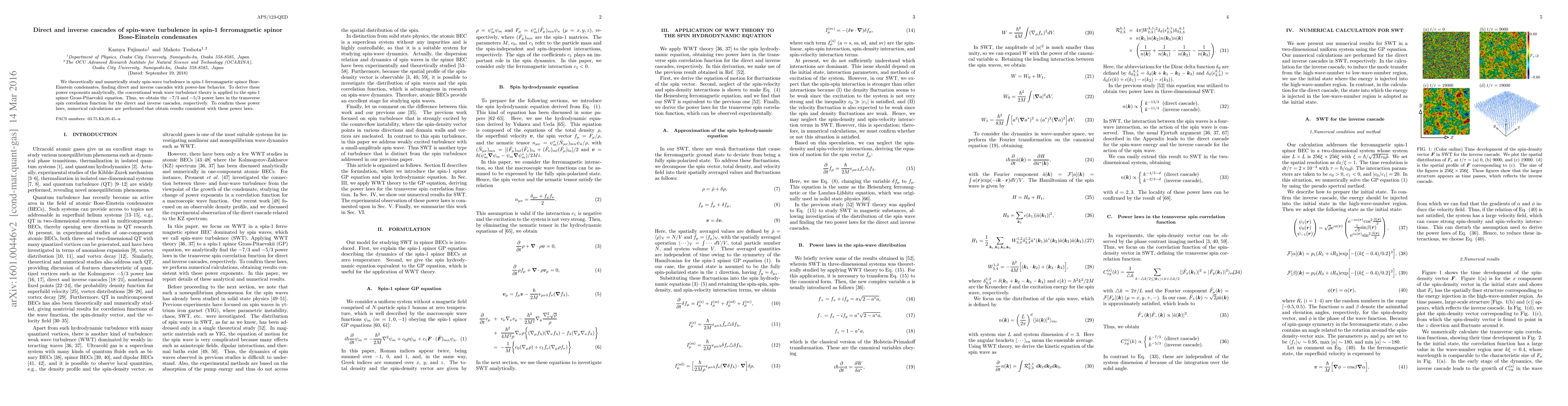 This paper investigates spin-wave turbulence in spin-1 ferromagnetic spinor Bose-Einstein condensates, revealing both direct and inverse cascades with power-law behaviors. Analytical and numerical methods confirm the $-7/3$ and $-5/3$ power laws for direct and inverse cascades, respectively.