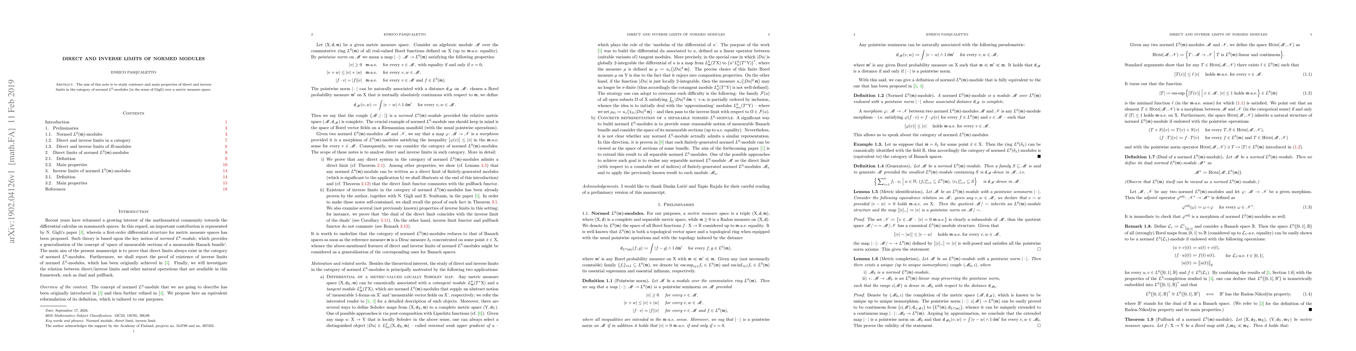 This paper investigates the existence and properties of direct and inverse limits within the category of normed $L^0$-modules over a metric measure space, focusing on the structural characteristics and implications of these limits.