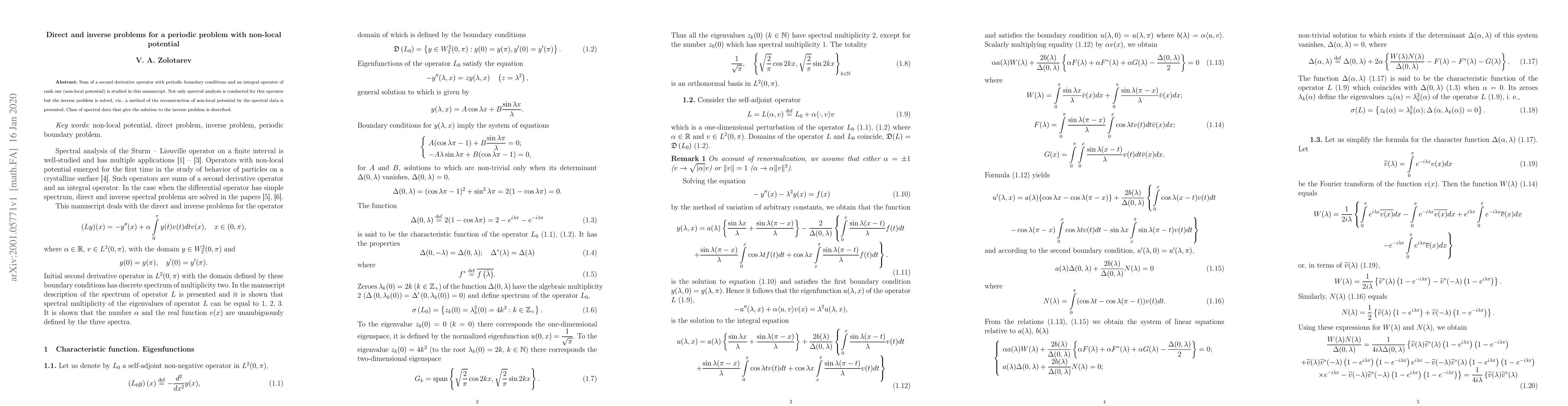 Sum of a second derivative operator with periodic boundary conditions and an integral operator of rank one (non-local potential) is studied in this manuscript. Not only spectral analysis is conducted for this operator but the inverse problem is solved, viz., a method of the reconstruction of non-local potential by the spectral data is presented. Class of spectral data that give the solution to the inverse problem is described.