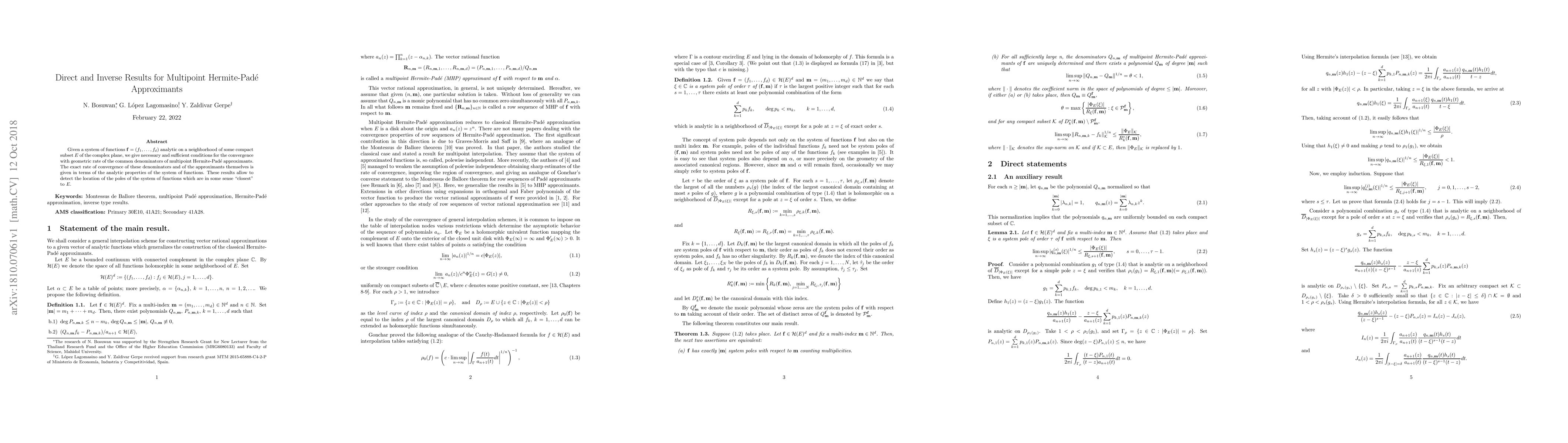 Given a system of functions f = (f1, . . . , fd) analytic on a neighborhood of some compact subset E of the complex plane, we give necessary and sufficient conditions for the convergence with geometric rate of the common denominators of multipoint Hermite-Pade approximants. The exact rate of convergence of these denominators and of the approximants themselves is given in terms of the analytic properties of the system of functions. These results allow to detect the location of the poles of the system of functions which are in some sense closest to E.