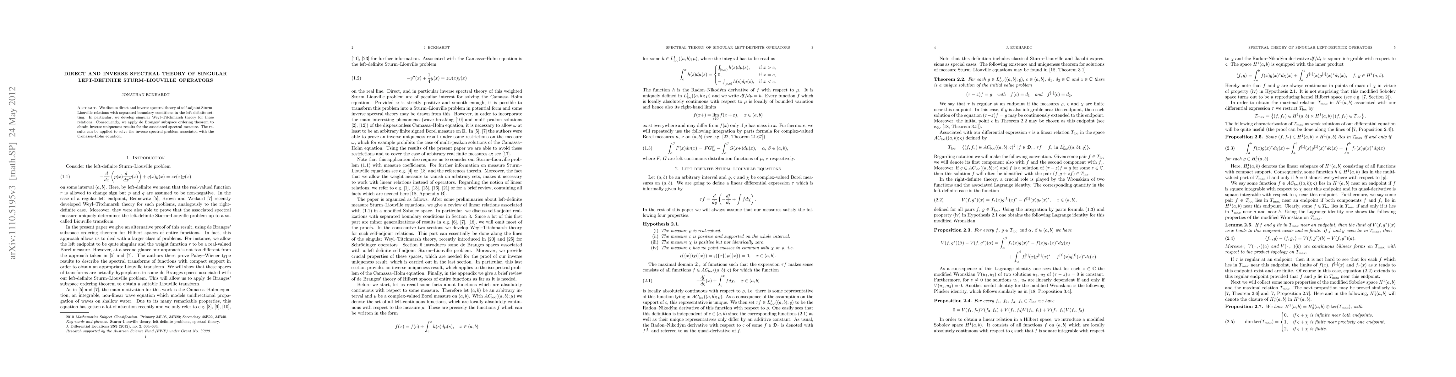 This paper explores the direct and inverse spectral theory for singular left-definite Sturm-Liouville operators, developing a singular Weyl-Titchmarsh theory. It applies de Branges' subspace ordering theorem to obtain unique inverse spectral results, with applications to the inverse spectral problem of the Camassa-Holm equation.