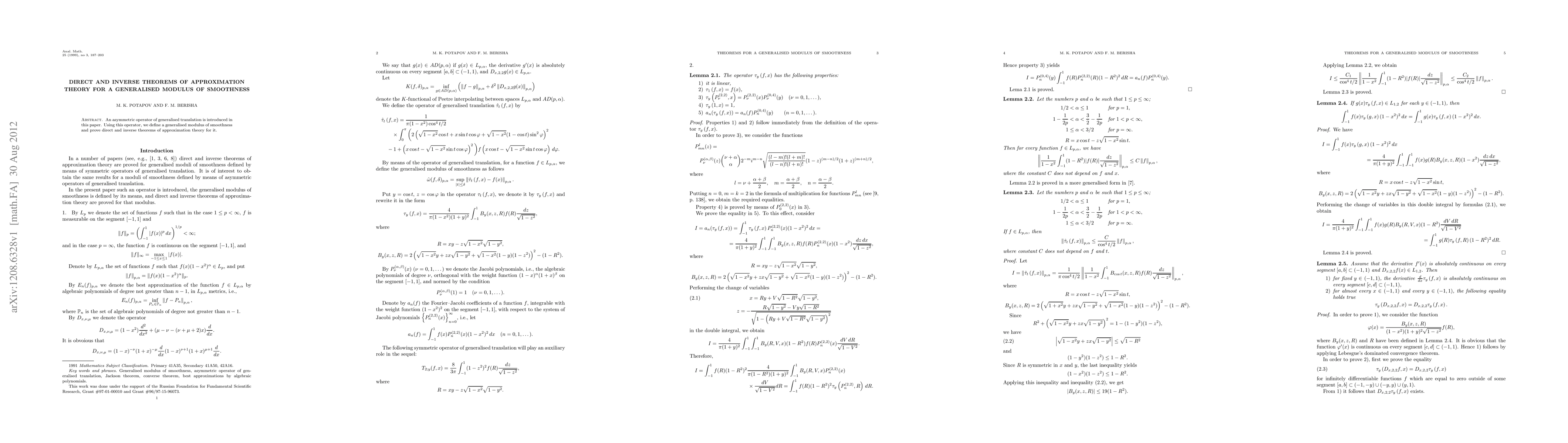 This paper introduces a generalized modulus of smoothness using an asymmetric operator and proves direct and inverse theorems of approximation theory for it, with implications for understanding approximation in various fields.