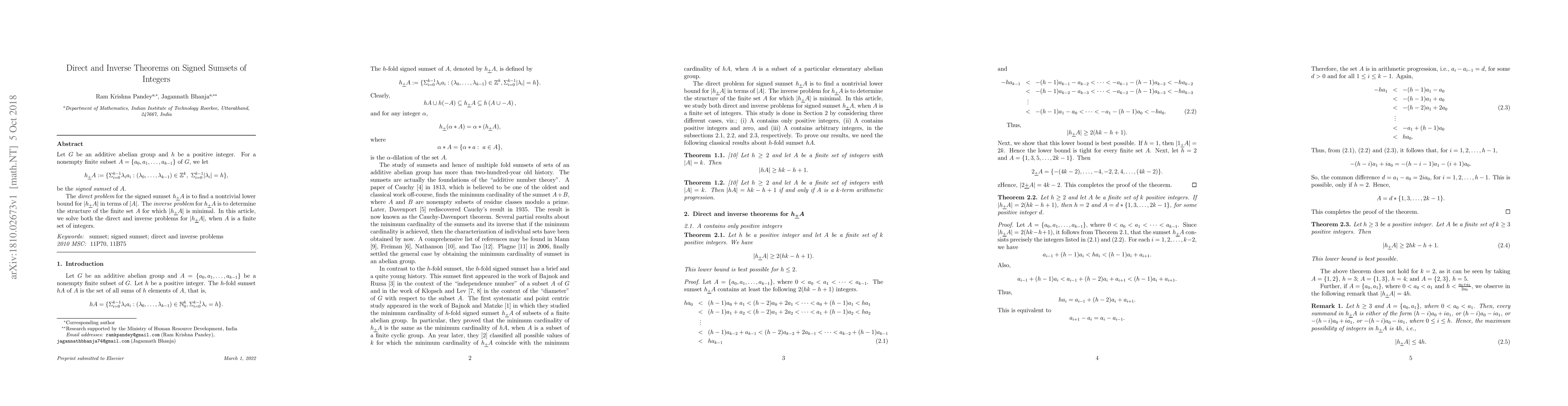This paper investigates how the size and structure of signed sumsets of finite integer sets relate, providing solutions to both estimating their minimal size and characterizing the sets that achieve this minimum. The results deepen understanding of additive properties in integer sets and have implications for additive number theory.