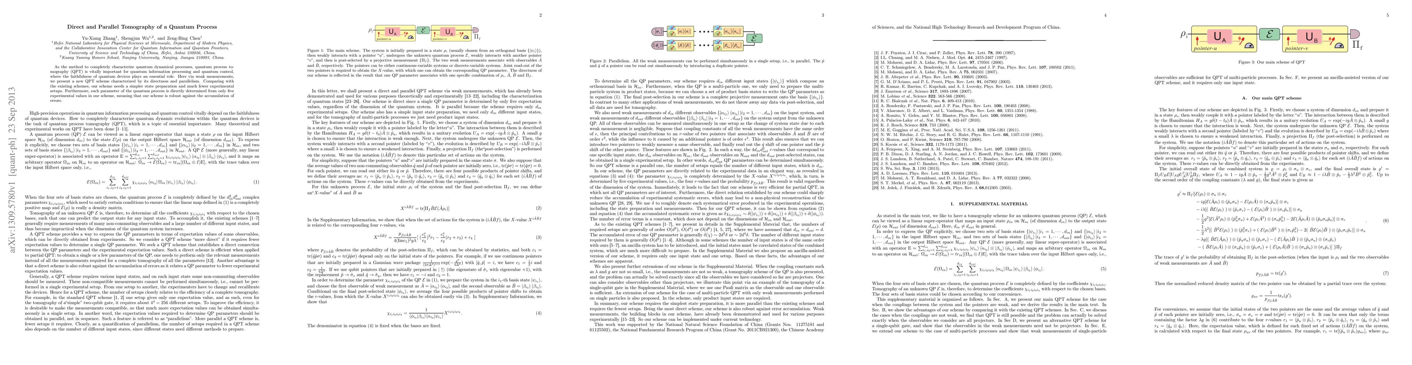 This paper introduces a novel quantum process tomography (QPT) scheme utilizing weak measurements that offers direct and parallel reconstruction of quantum processes. Compared to existing methods, it requires simpler state preparation and fewer experimental setups, determining each process parameter directly from just five experimental values.