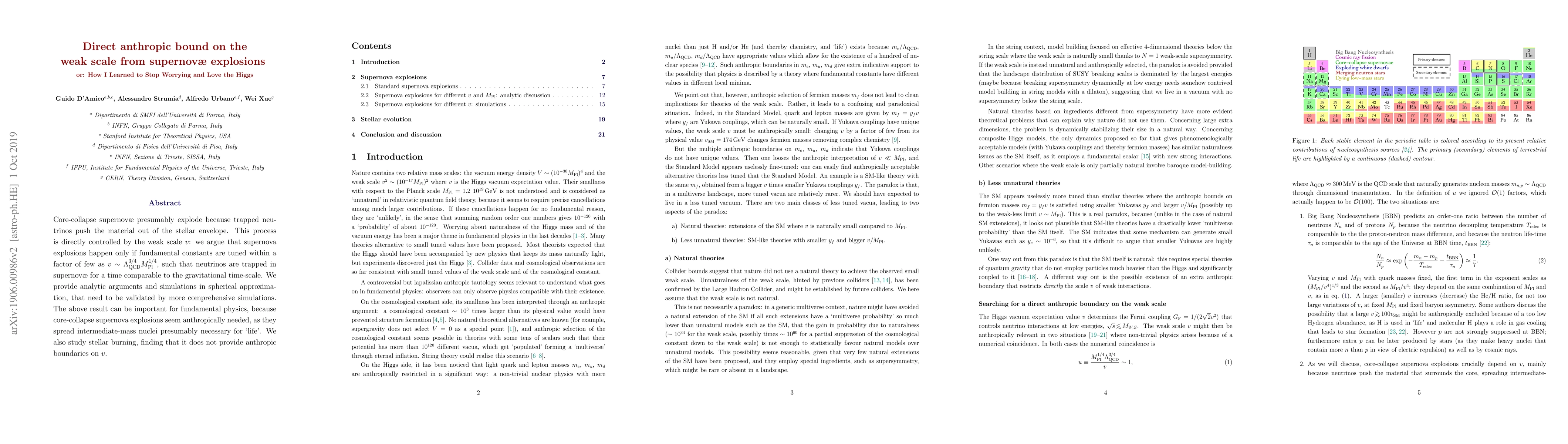 Core-collapse supernovae presumably explode because trapped neutrinos push the material out of the stellar envelope. This process is directly controlled by the weak scale $v$: we argue that supernova explosions happen only if fundamental constants are tuned within a factor of few as $v \sim \Lambda_{\rm QCD}^{3/4} M_{\rm Pl}^{1/4}$, such that neutrinos are trapped in supernovae for a time comparable to the gravitational time-scale. We provide analytic arguments and simulations in spherical approximation, that need to be validated by more comprehensive simulations. The above result can be important for fundamental physics, because core-collapse supernova explosions seem anthropically needed, as they spread intermediate-mass nuclei presumably necessary for `life'. We also study stellar burning, finding that it does not provide anthropic boundaries on $v$.