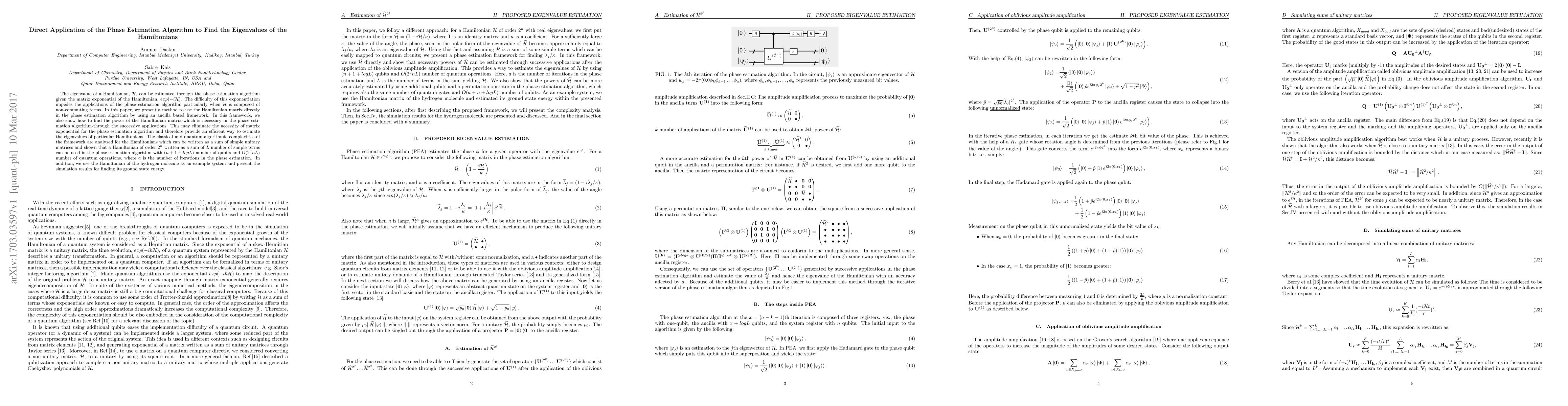 This paper proposes a method to directly apply the phase estimation algorithm to find Hamiltonian eigenvalues by using an ancilla-based framework, eliminating the need for matrix exponential computation. The framework's complexity is analyzed, showing it can estimate eigenvalues with $(n+1+\log L)$ qubits and $O(2^{a}nL)$ operations, demonstrated through the hydrogen molecule's ground state energy.