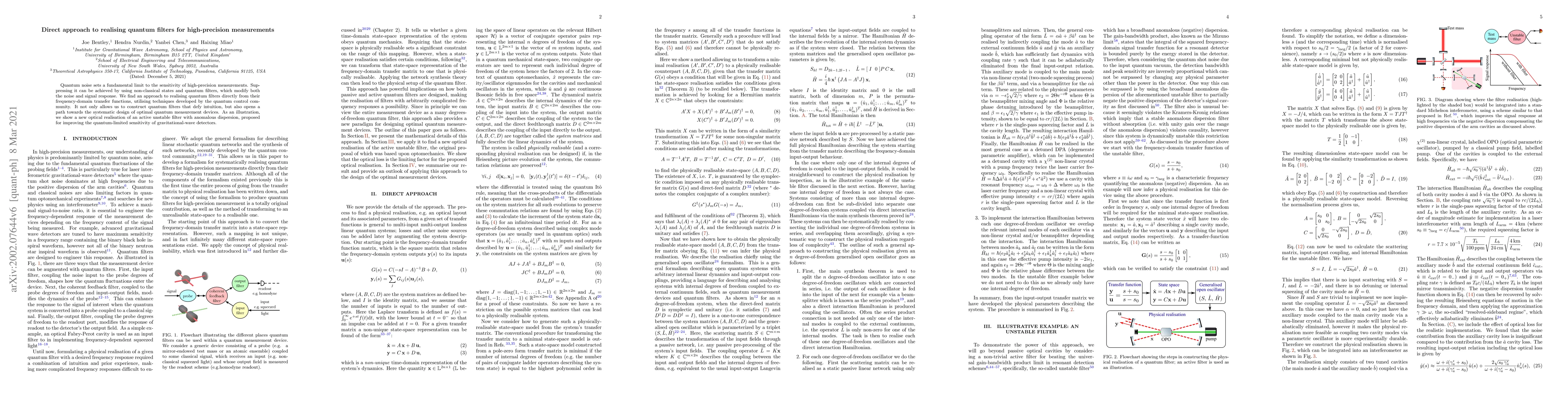 Quantum noise sets a fundamental limit to the sensitivity of high-precision measurements. Suppressing it can be achieved by using non-classical states and quantum filters, which modify both the noise and signal response. We find a novel approach to realising quantum filters directly from their frequency-domain transfer functions, utilising techniques developed by the quantum control community. It not only allows us to construct quantum filters that defy intuition, but also opens a path towards the systematic design of optimal quantum measurement devices. As an illustration, we show a new optical realisation of an active unstable filter with anomalous dispersion, proposed for improving the quantum-limited sensitivity of gravitational-wave detectors.