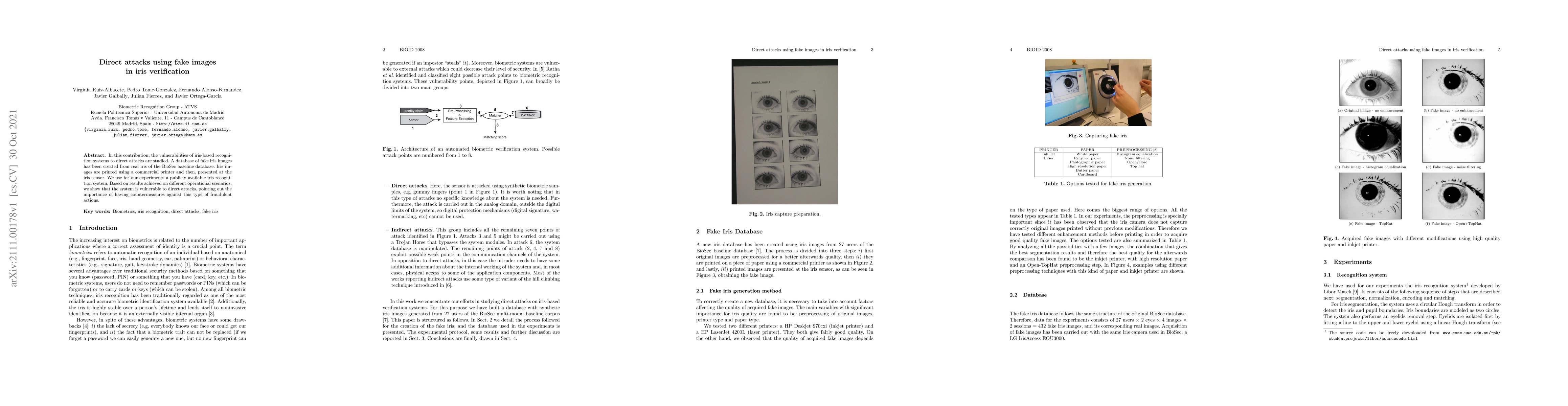 This paper investigates the vulnerabilities of iris-based recognition systems to direct attacks using fake iris images printed from real iris data. The study demonstrates that the tested system is susceptible to such attacks, highlighting the need for countermeasures against fraudulent actions.