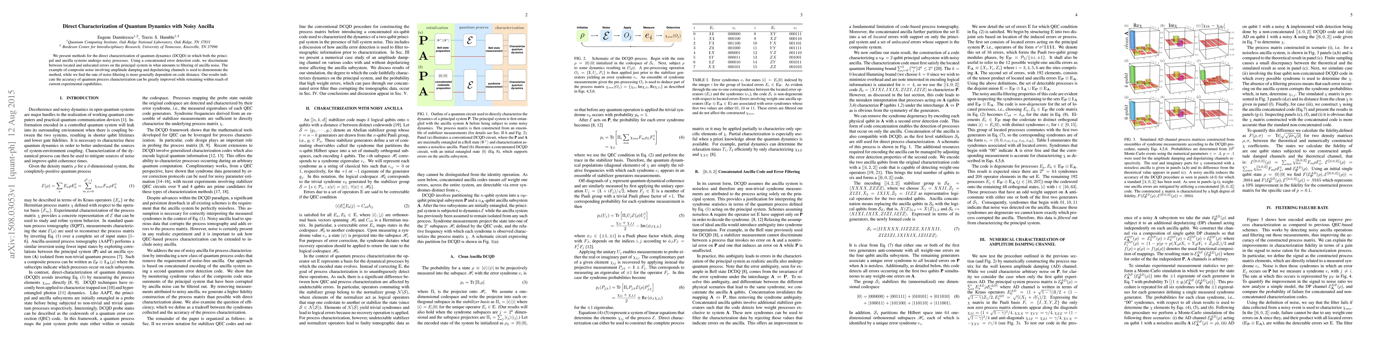 This paper introduces methods for characterizing quantum dynamics under noisy conditions, employing a concatenated error detection code to filter ancilla noise and improve accuracy. The study demonstrates the effectiveness of the approach using composite noise examples and finds that noise filtering efficiency depends on code distance.