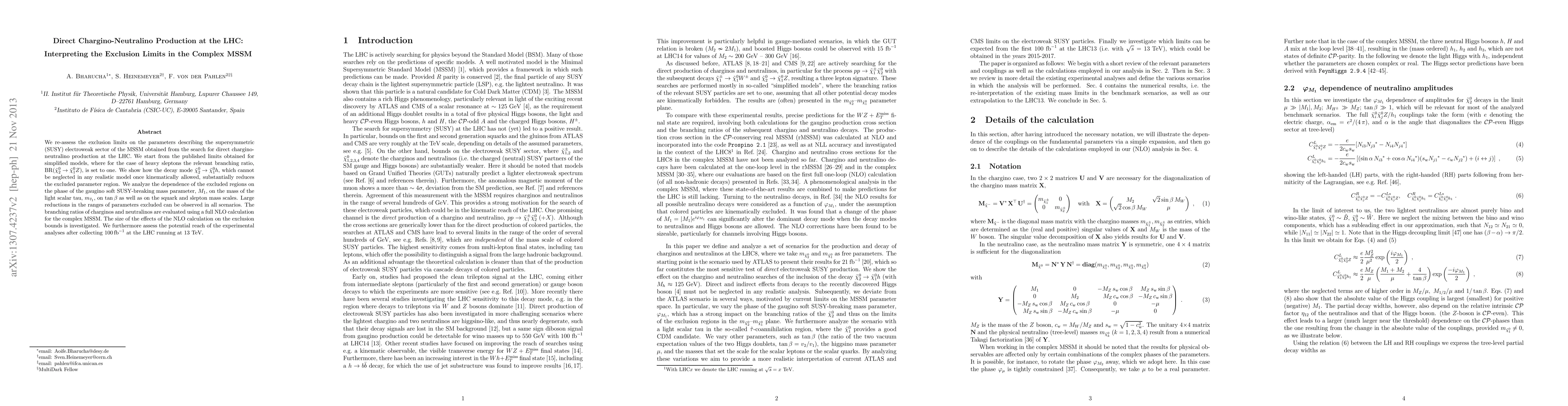 We re-assess the exclusion limits on the parameters describing the supersymmetric (SUSY) electroweak sector of the MSSM obtained from the search for direct chargino-neutralino production at the LHC. We start from published limits obtained in simplified models, where for the case of heavy sleptons the relevant branching ratio, BR(neu2->neu1 Z), is set to one. We show how the decay mode neu2->neu1 h, which cannot be neglected in any realistic model once kinematically allowed, substantially reduces the excluded parameter region. We analyze the dependence of the excluded regions on the phase of the gaugino soft SUSY-breaking mass parameter, M_1, on the mass of the light scalar tau, on tb as well as on the squark and slepton mass scales. Large reductions in the ranges of parameters excluded can be observed in all scenarios. The branching ratios of charginos and neutralinos are evaluated using a full NLO calculation for the complex MSSM. The size of the effects of the NLO calculation on the exclusion bounds is investigated. We furthermore assess the potential reach of the experimental analyses after collecting 100/fb at the LHC running at 13 TeV.