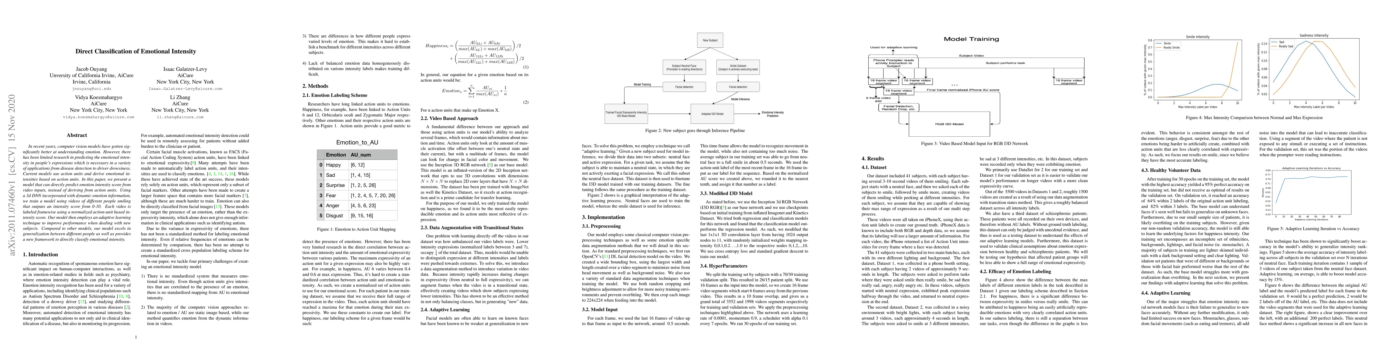 In this paper, we present a model that can directly predict emotion intensity score from video inputs, instead of deriving from action units. Using a 3d DNN incorporated with dynamic emotion information, we train a model using videos of different people smiling that outputs an intensity score from 0-10. Each video is labeled framewise using a normalized action-unit based intensity score. Our model then employs an adaptive learning technique to improve performance when dealing with new subjects. Compared to other models, our model excels in generalization between different people as well as provides a new framework to directly classify emotional intensity.