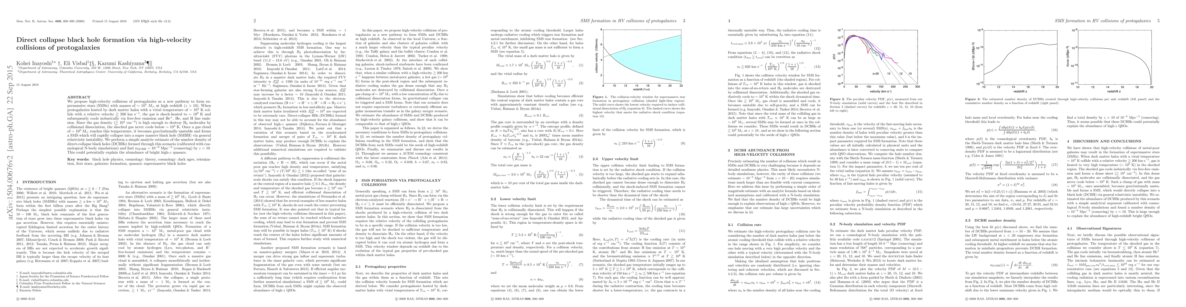 This paper proposes that high-velocity collisions of protogalaxies can lead to the formation of supermassive stars, which subsequently collapse into supermassive black holes (SMBHs). The collisions heat gas to high temperatures, preventing cooling and promoting the formation of these stars, potentially explaining the abundance of high-redshift quasars.