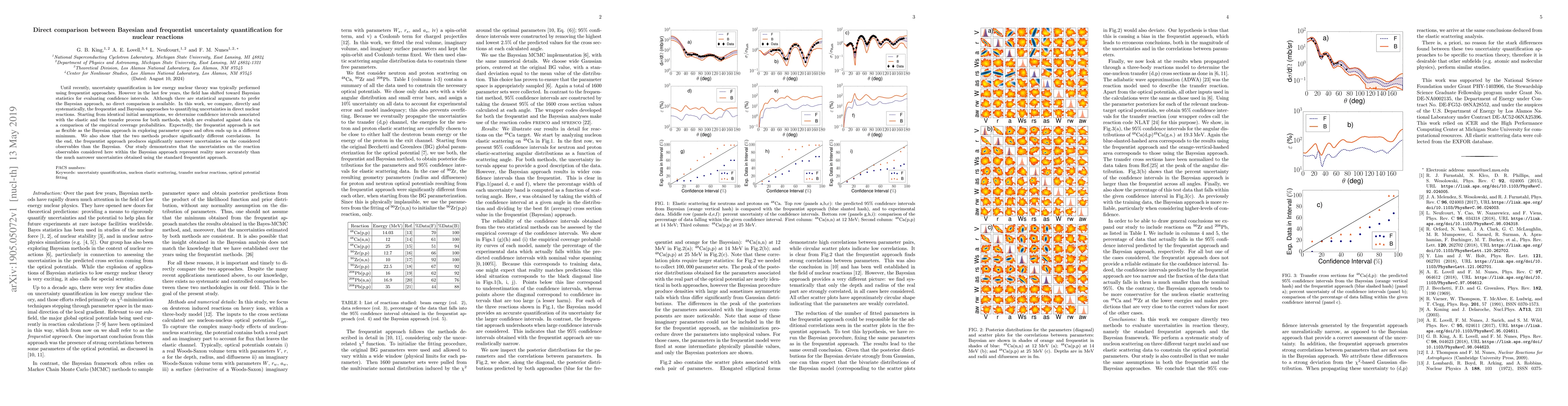 This paper directly compares frequentist and Bayesian methods for quantifying uncertainties in nuclear reactions, finding that while the frequentist approach yields narrower uncertainties, the Bayesian approach provides a more accurate reflection of reality. The Bayesian method is shown to be more flexible and produces different correlations compared to the frequentist method.