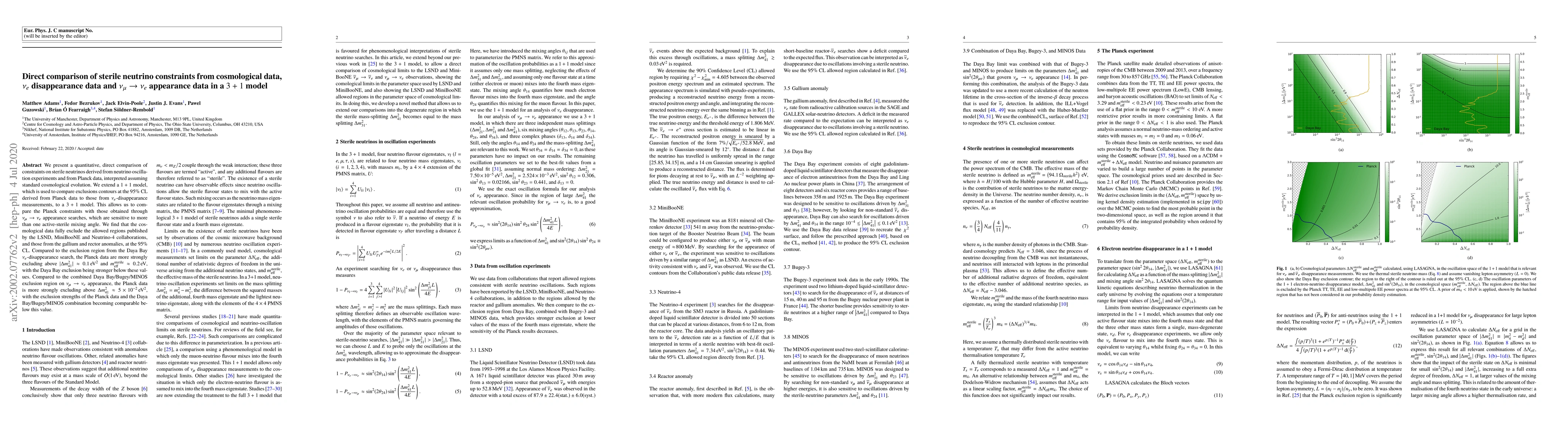 This paper compares constraints on sterile neutrinos from cosmological data, neutrino disappearance, and appearance experiments in a $3+1$ model. It finds that Planck data excludes regions allowed by previous experiments like LSND and MiniBooNE at the 95% confidence level, with Planck data being stronger for higher mass values.