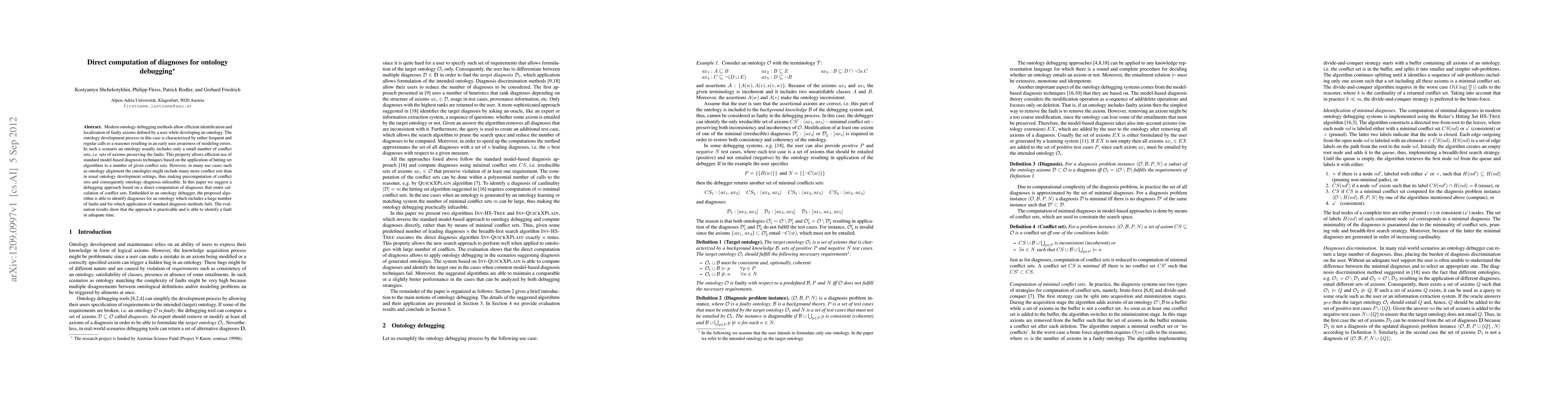 This paper proposes a novel debugging approach for ontologies that directly computes diagnoses without precomputing conflict sets, enabling efficient fault identification in ontologies with numerous conflict sets. The method is shown to be practical and effective in diagnosing faults in a timely manner.