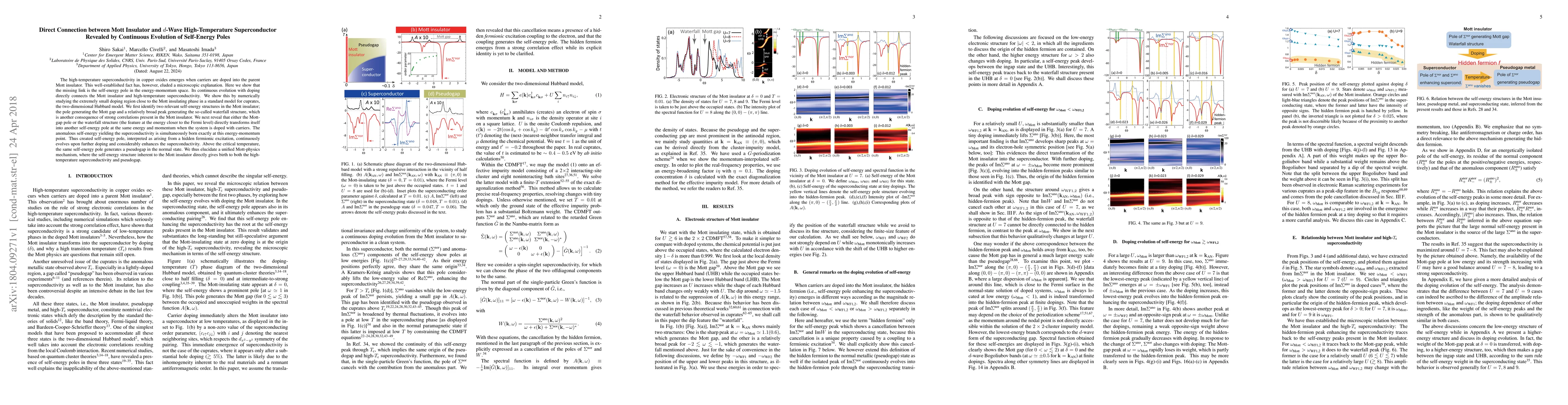 This research reveals a continuous evolution of self-energy poles in the two-dimensional Hubbard model that directly connects the Mott insulator phase to high-temperature superconductivity in copper oxides. The study identifies how the self-energy structures inherent to the Mott insulator transform into superconducting poles upon doping, providing a unified mechanism for both superconductivity and pseudogap formation.