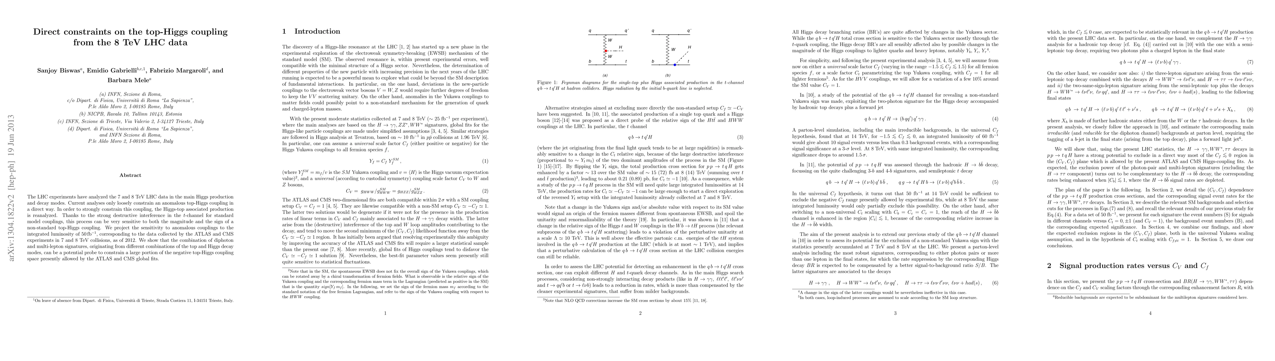 This paper reanalyzes 8 TeV LHC data to directly constrain the top-Higgs coupling, focusing on Higgs-top associated production. It projects that combining di-photon and multi-lepton signatures can significantly probe anomalous couplings, improving current constraints.