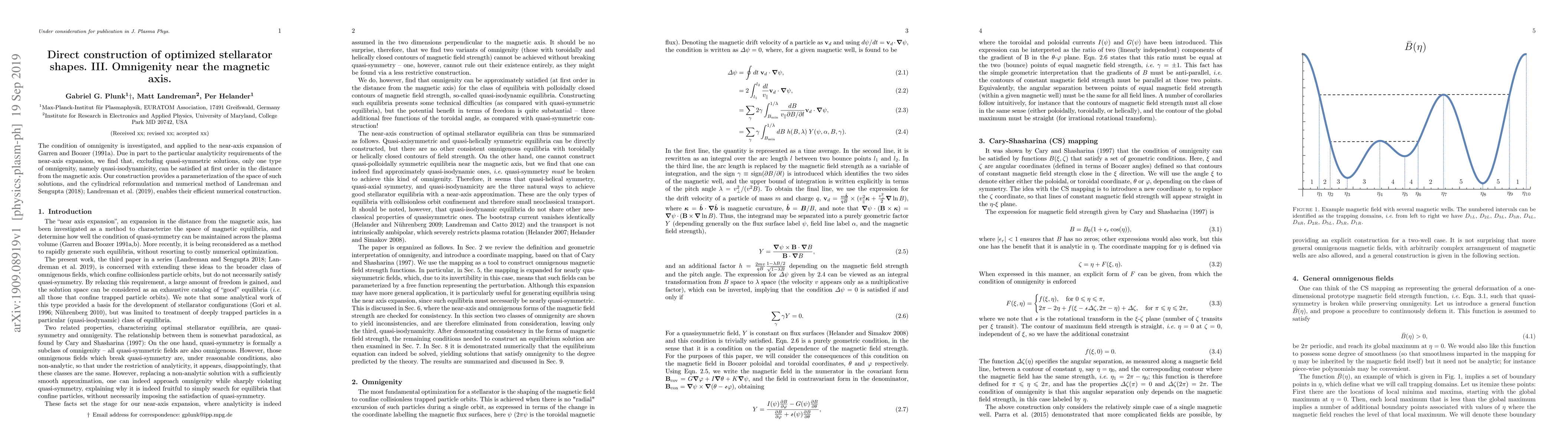 Researchers investigated omnigenity near the magnetic axis in stellarator shapes, finding that only quasi-isodynamic solutions can satisfy the condition at first order. They developed a parameterization method for constructing such solutions.