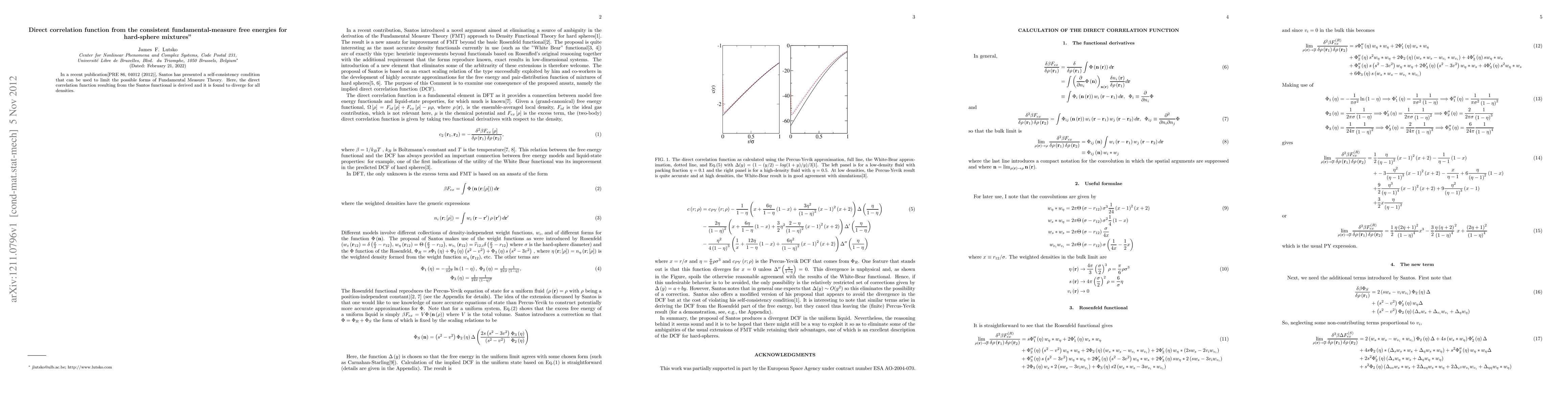 In a recent publication[PRE 86, 04012 (2012)], Santos has presented a self-consistency condition that can be used to limit the possible forms of Fundamental Measure Theory. Here, the direct correlation function resulting from the Santos functional is derived and it is found to diverge for all densities.