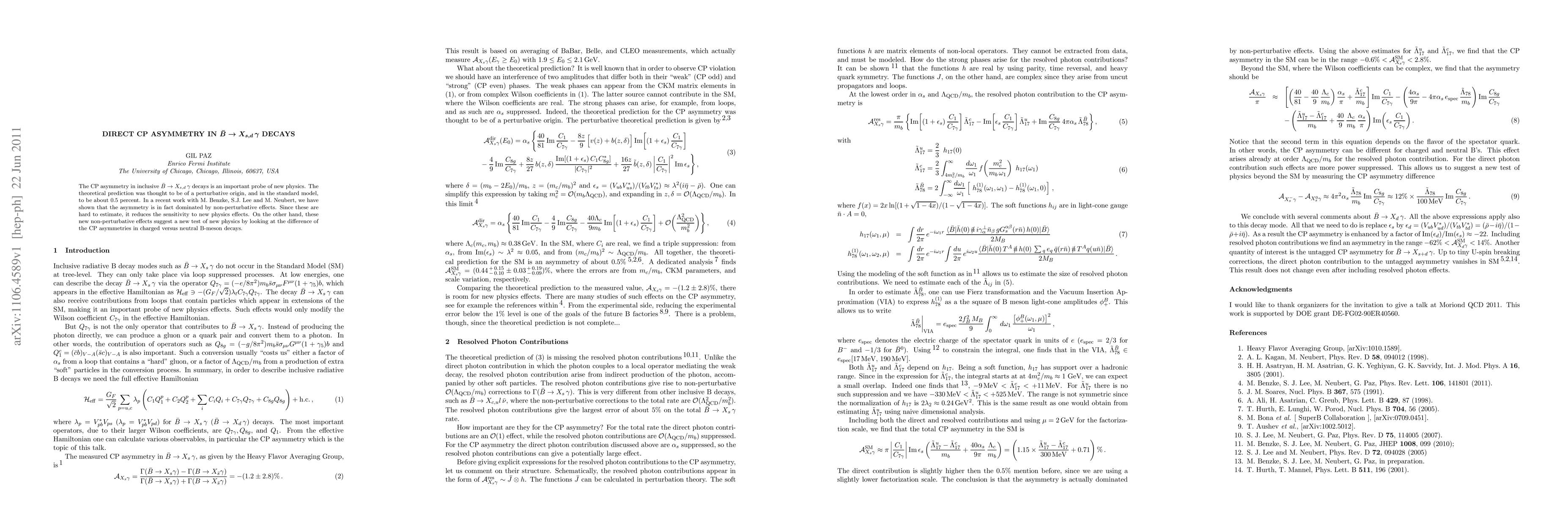The CP asymmetry in inclusive B->X_{s,d}+gamma decays is an important probe of new physics. The theoretical prediction was thought to be of a perturbative origin, and in the standard model, to be about 0.5 percent. In a recent work with M. Benzke, S.J. Lee and M. Neubert, we have shown that the asymmetry is in fact dominated by non-perturbative effects. Since these are hard to estimate, it reduces the sensitivity to new physics effects. On the other hand, these new non-perturbative effects suggest a new test of new physics by looking at the difference of the CP asymmetries in charged versus neutral B-meson decays.
