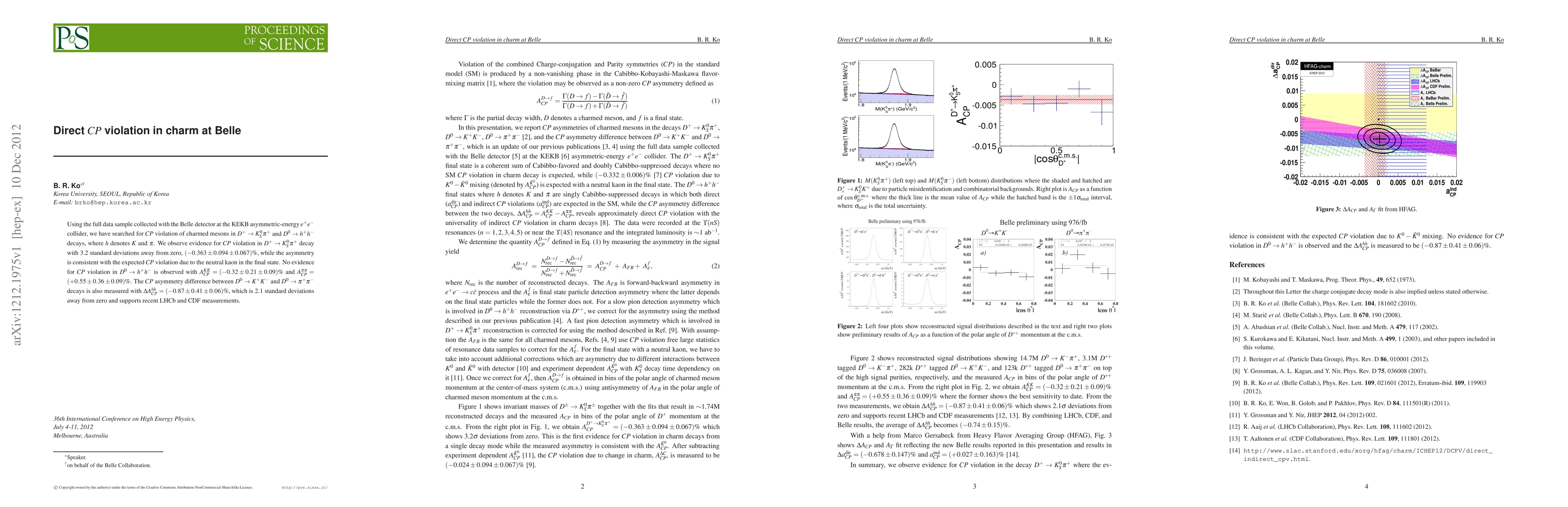 This study using Belle detector data finds evidence for CP violation in $D^+\rightarrow K^0_S\pi^+$ decay with a 3.2 standard deviation significance, while no significant CP violation is observed in $D^0\rightarrow h^+h^-$ decays. The CP asymmetry difference between $D^0\rightarrow K^+K^-$ and $D^0\rightarrow\pi^+\pi^-$ decays is also measured, supporting recent LHCb and CDF findings.