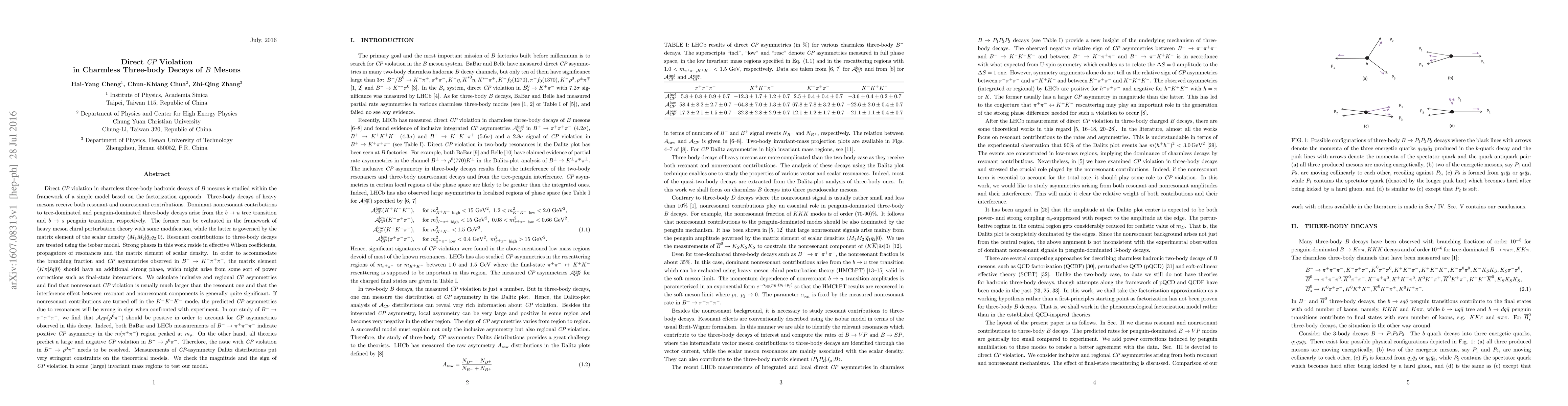 This paper investigates direct CP violation in charmless three-body decays of $B$ mesons using a factorization approach. It finds that nonresonant contributions dominate over resonant ones, with significant interference effects, and stresses the importance of final-state interactions for accurate predictions of CP asymmetries.