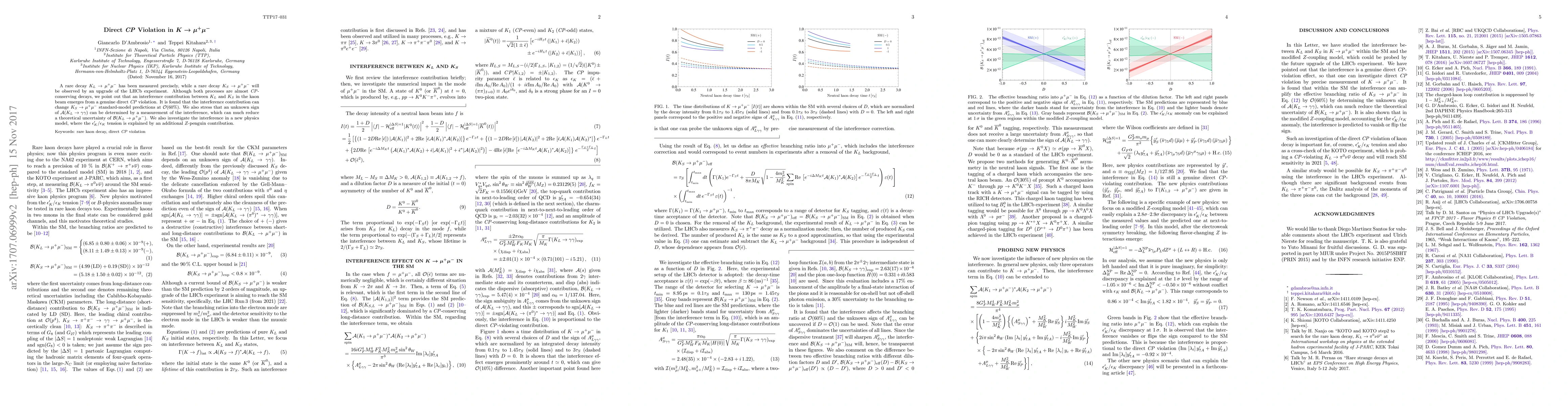 A rare decay $K_L \to \mu^+ \mu^- $ has been measured precisely, while a rare decay $K_S \to \mu^+ \mu^- $ will be observed by an upgrade of the LHCb experiment. Although both processes are almost CP-conserving decays, we point out that an interference contribution between $K_L$ and $K_S$ in the kaon beam emerges from a genuine direct CP violation. It is found that the interference contribution can change $K_S \to \mu^+ \mu^-$ standard-model predictions at $\mathcal{O}(60\%)$. We also stress that an unknown sign of $\mathcal{A}(K_L \to \gamma \gamma)$ can be determined by a measurement of the interference, which can much reduce a theoretical uncertainty of $\mathcal{B}(K_L \to \mu^+ \mu^-)$. We also investigate the interference in a new physics model, where the $\epsilon'_K / \epsilon_K$ tension is explained by an additional $Z$-penguin contribution.