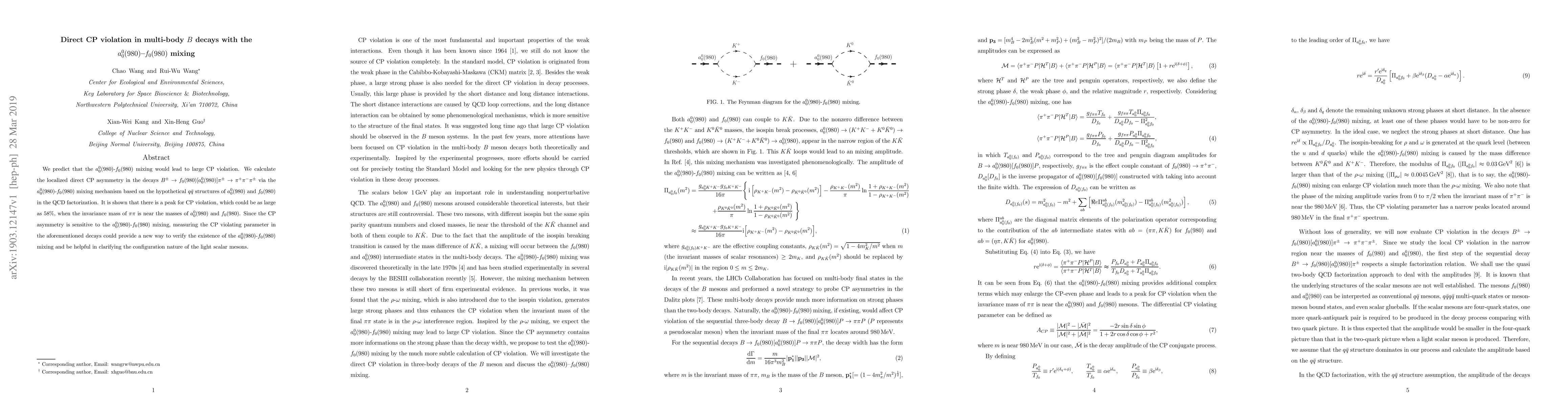 This paper predicts significant CP violation in $B$ meson decays due to $a_0^0(980)$--$f_0(980)$ mixing, estimating a peak CP asymmetry of up to 58%. The study suggests that measuring the CP violating parameter in these decays could verify the mixing and clarify the nature of light scalar mesons.