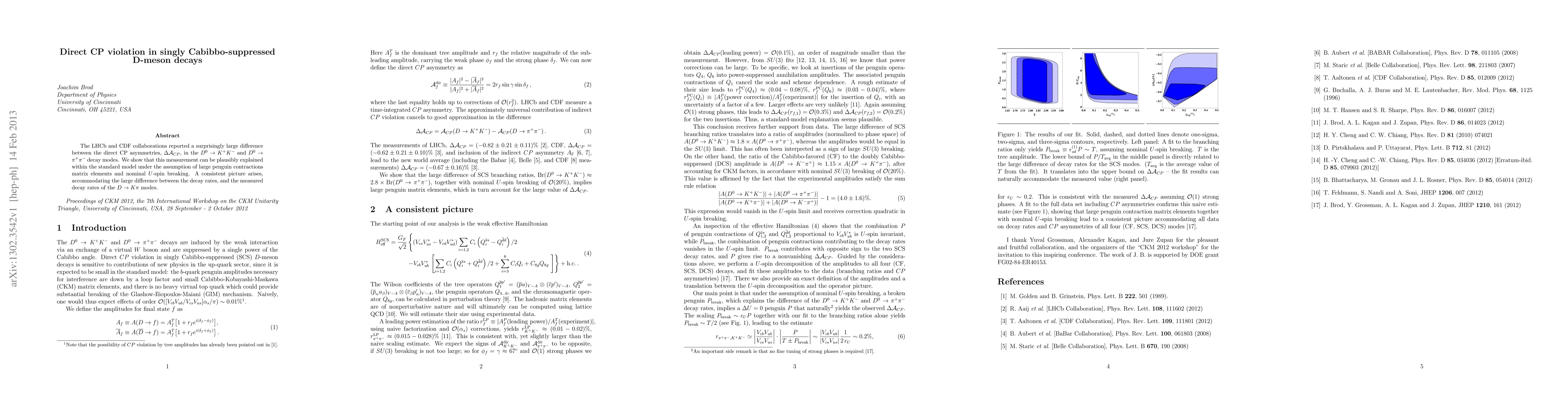 The study used a combination of theoretical calculations and experimental data to investigate direct CP violation in singly Cabibbo-suppressed D-meson decays.