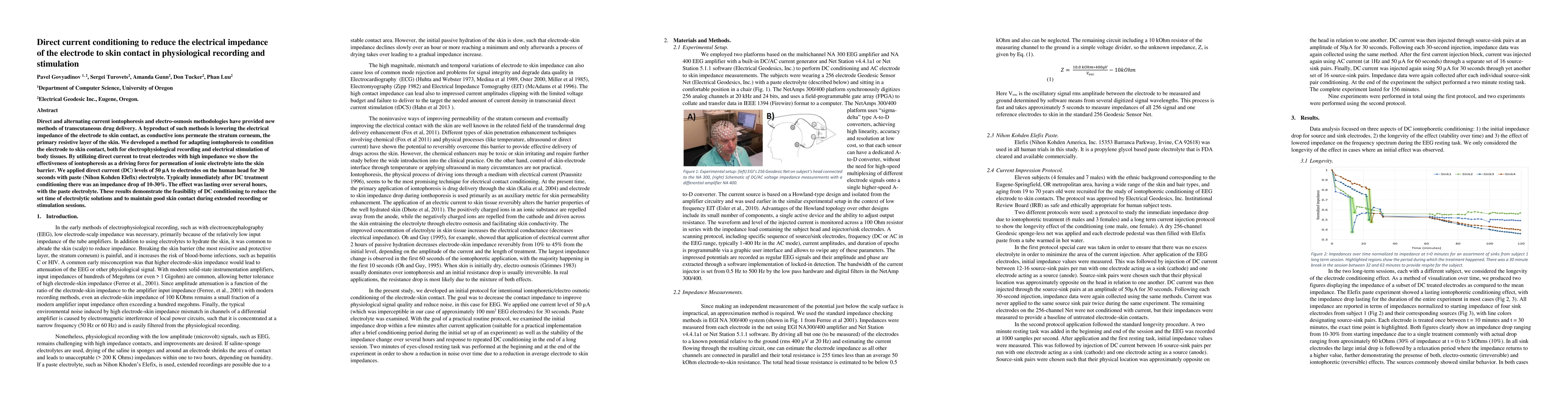 Researchers developed a method to reduce electrical impedance of electrodes in skin contact using direct current conditioning, achieving an average impedance drop of 10-30% after a 30-second treatment.