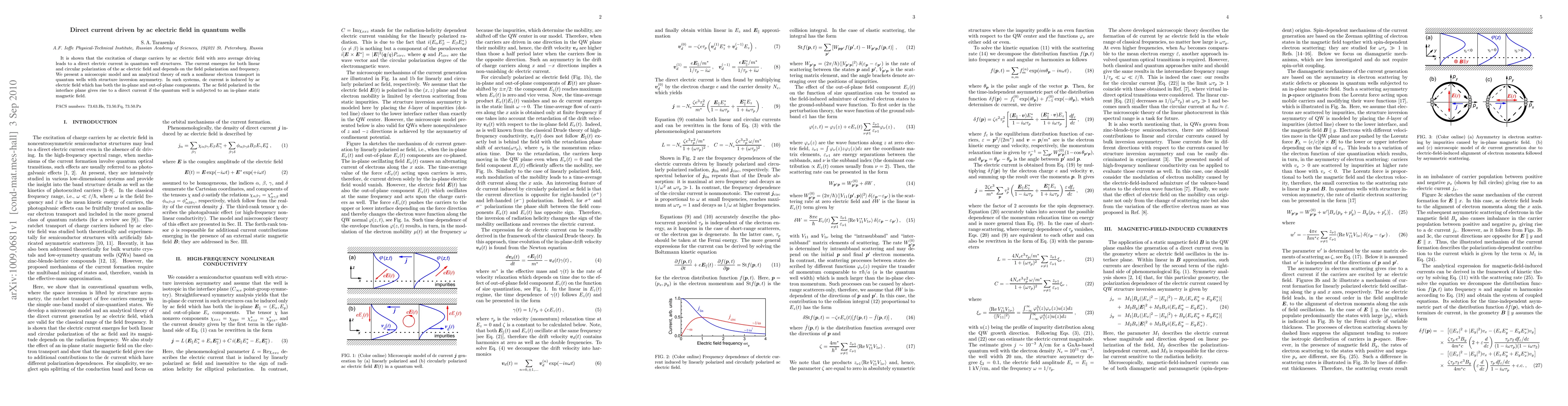 This paper demonstrates that an ac electric field with zero average can induce a direct current in quantum well structures due to charge carrier excitation, depending on the field's polarization and frequency. The study presents an analytical theory explaining this nonlinear electron transport in asymmetric quantum wells, showing that both in-plane and out-of-plane components of the ac field can generate the dc current.