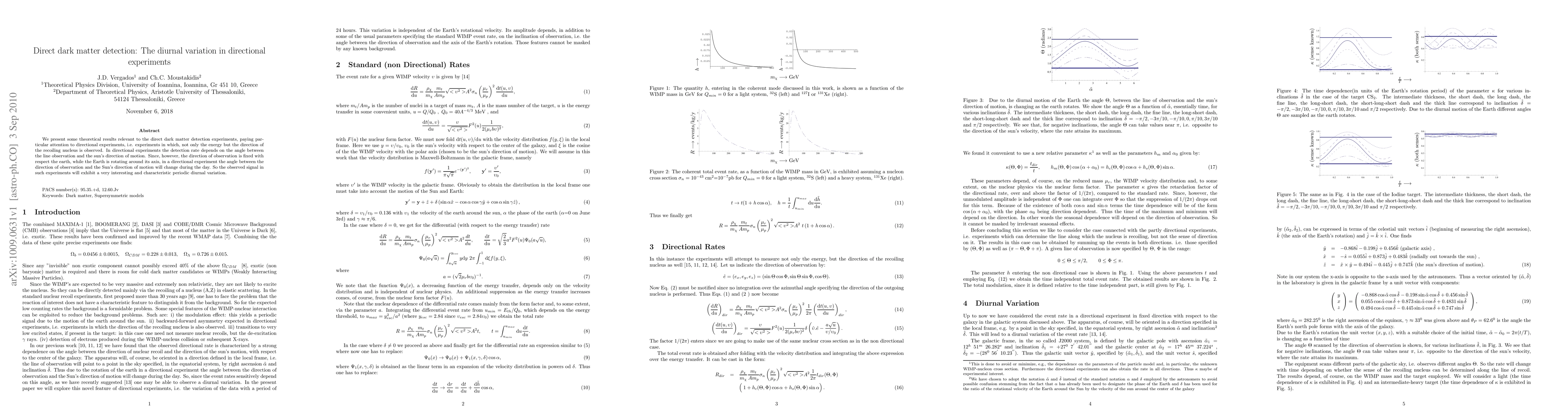 We present some theoretical results relevant to the direct dark matter detection experiments, paying particular attention to directional experiments, i.e. experiments in which, not only the energy but the direction of the recoiling nucleus is observed. In directional experiments the detection rate depends on the angle between the line observation and the sun's direction of motion. Since, however, the direction of observation is fixed with respect the earth, while the Earth is rotating around its axis, in a directional experiment the angle between the direction of observation and the Sun's direction of motion will change during the day. So the observed signal in such experiments will exhibit a very interesting and characteristic periodic diurnal variation.