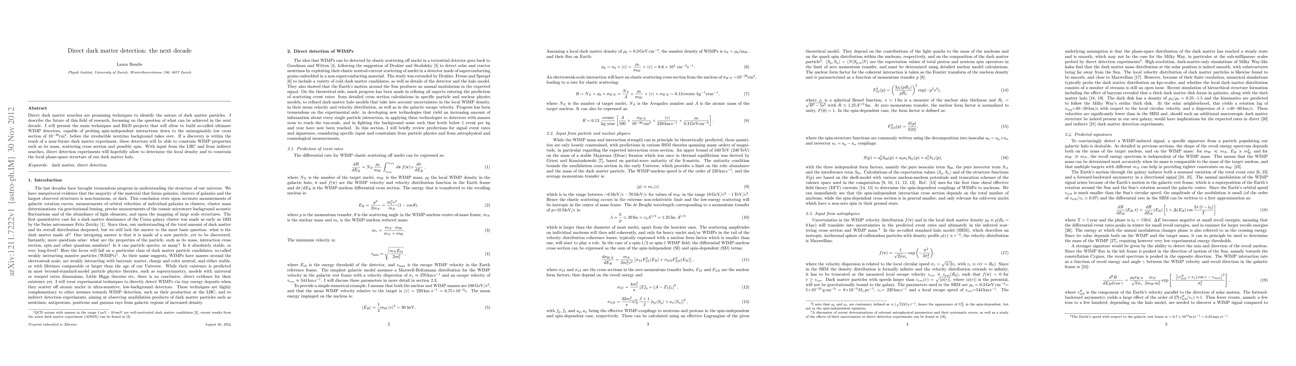 Direct dark matter searches are promising techniques to identify the nature of dark matter particles. I describe the future of this field of research, focussing on the question of what can be achieved in the next decade. I will present the main techniques and R&D projects that will allow to build so-called ultimate WIMP detectors, capable of probing spin-independent interactions down to the unimaginably low cross section of 1e-48 cm2, before the irreducible neutrino background takes over. If a discovery is within the reach of a near-future dark matter experiment, these detectors will be able to constrain WIMP properties such as its mass, scattering cross section and possibly spin. With input from the LHC and from indirect searches, direct detection experiments will hopefully allow to determine the local density and to constrain the local phase-space structure of our dark matter halo.
